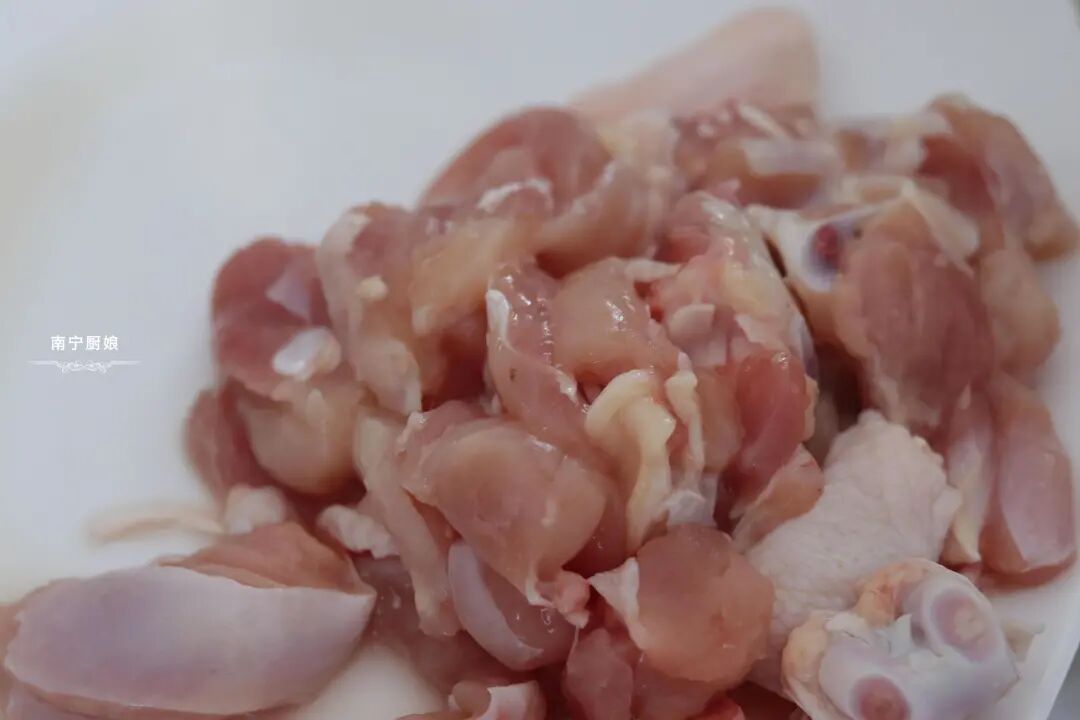 1、把鸡腿剔除骨头,然后把鸡腿肉切块洗净待用