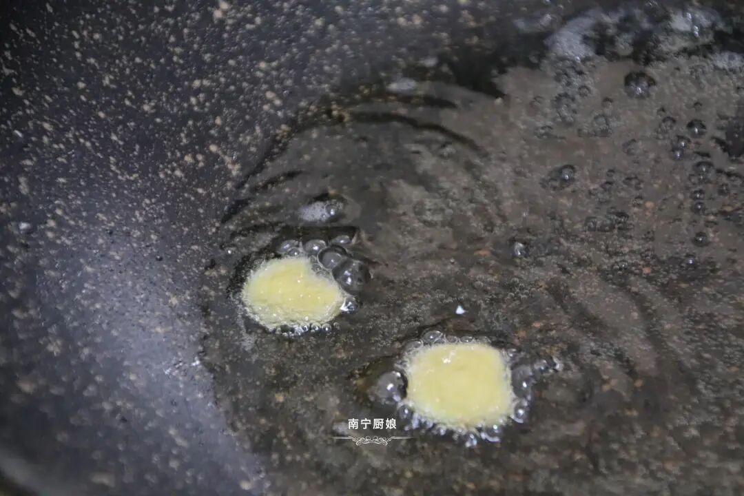 3、起锅,放入适量的花生油烧热烧热,把生姜片放进去爆香