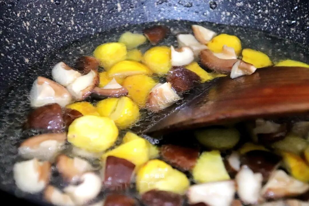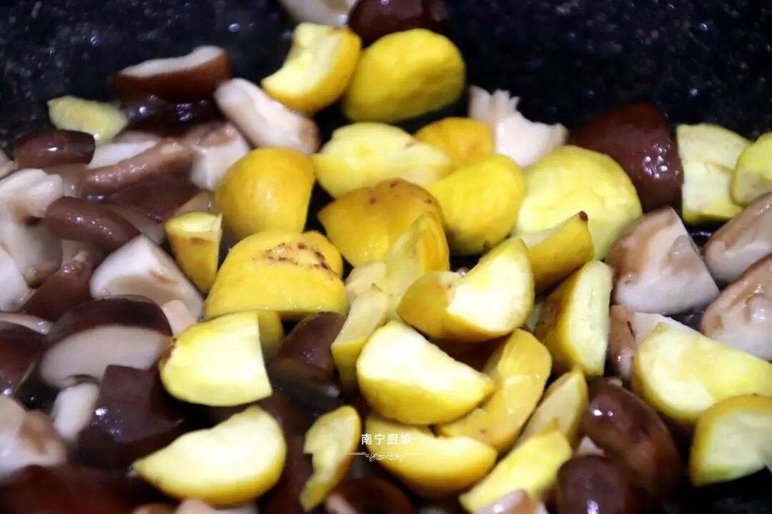 2、板栗本身就很粉糯香甜,所以平常做菜喜欢放鸡精的朋友可以不放哦。