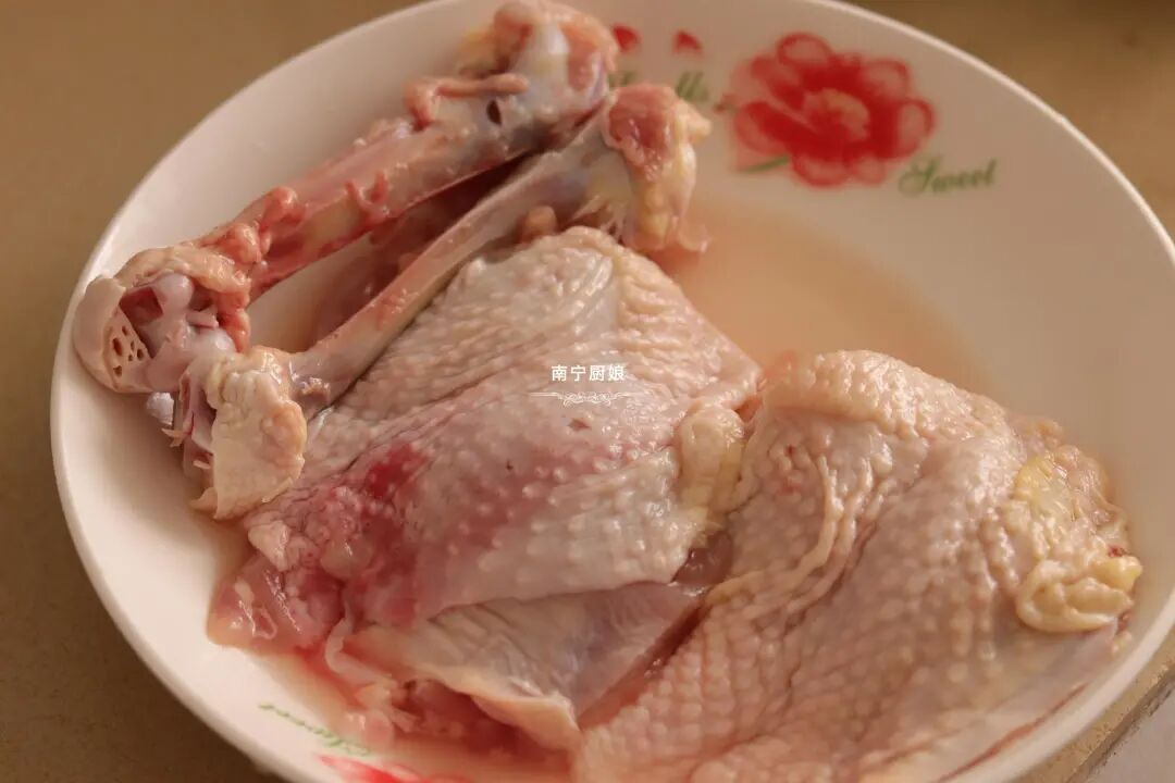1、把鸡腿洗净后剔掉骨头,好方便待会我们把鸡腿肉切块哦