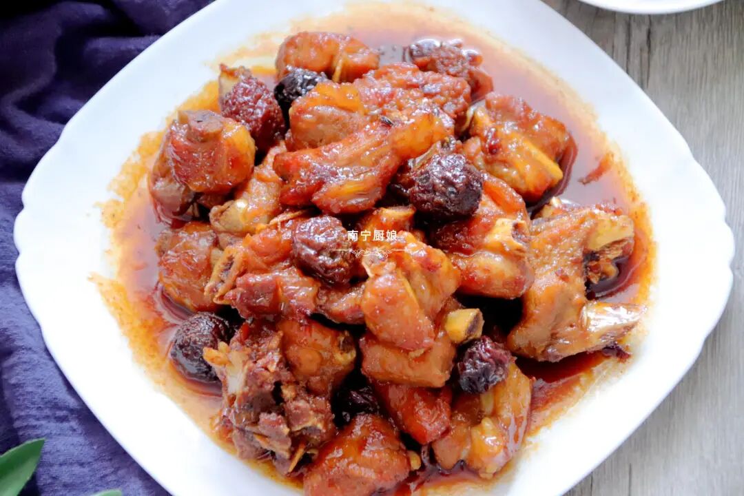 出锅装盘,一盘色香味俱全的话梅小排就做好啦!