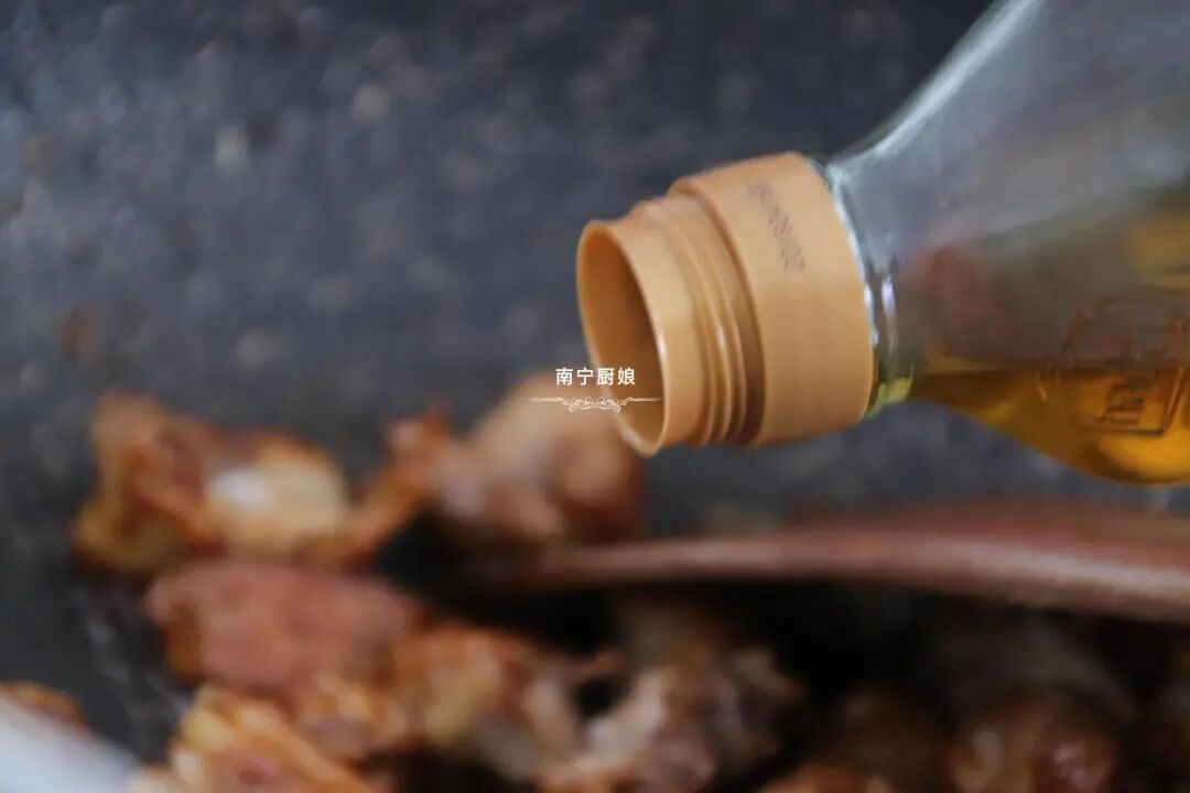 6、等锅里的汤汁只剩下一半的时候,倒入2勺味极鲜翻炒均匀,然后继续盖上锅盖小火炖煮5分钟,烧至汤汁浓稠收汁