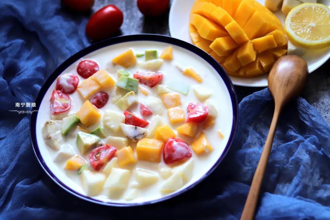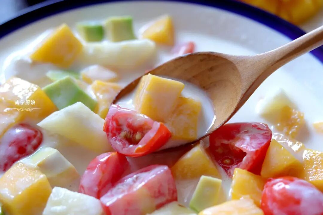 5种水果一起搭配,营养丰富又美味,对于素食者来说,吃上一盘这样的水果沙拉,不仅可以给身体补充满满的能量,还可以同时起到减肥瘦身,杜绝高热量高脂肪食材的摄入,起到良好的减肥瘦身效果,胖子越吃越瘦!
