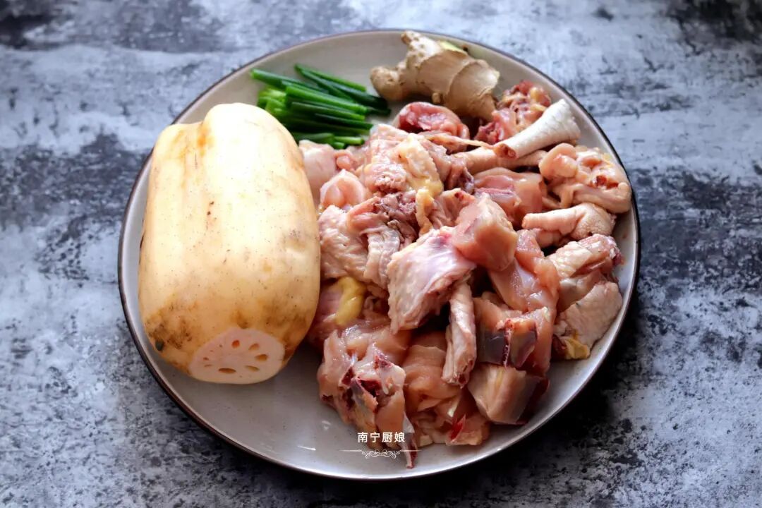 今天厨娘给大家分享一道做法简单又营养滋补的炖品,大人小孩都适合吃哦!这道炖品就是莲藕炖鸡,大家都知道莲藕的营养价值很高,富含钙、铁、维生素、纤维素等营养成分,具有补益气血、提高人体免疫力、清热解毒的功效,是一种很好的滋补食材,常吃具有提振食欲、促进消化的作用。而鸡肉富含蛋白质、维生素等营养元素,一直是最佳的亲民炖品食材,鸡肉炖汤具有温中益气、补肾填精、养血乌发、滋润肌肤觉得功效,大人小孩都适合吃;把莲藕和土鸡一起炖,有荤有素,好吃不油腻,还能滋补身体,提高人体免疫力,可以多做给家人吃!