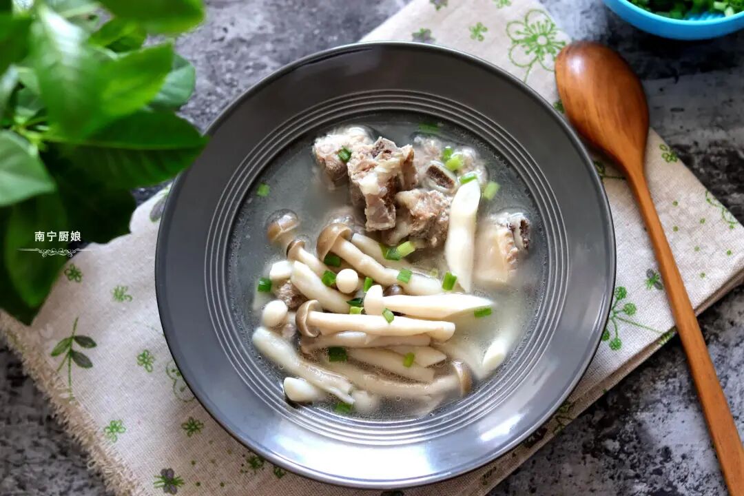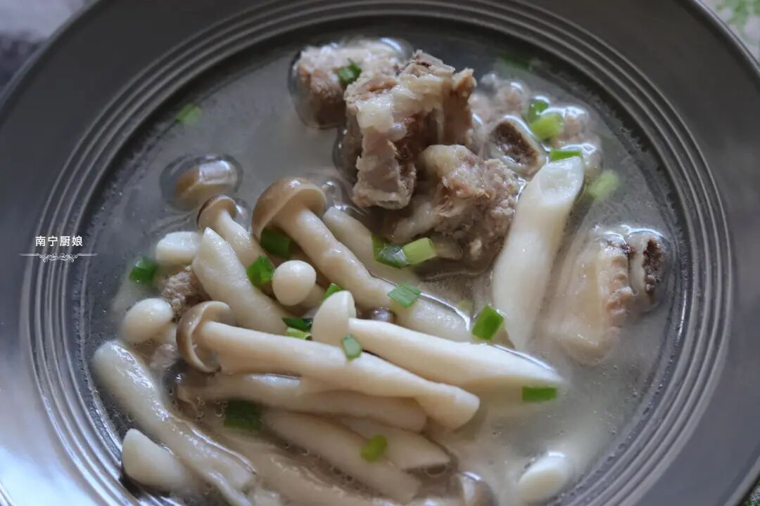 蟹味菇是一种优良的珍稀美味食用菌,蟹味菇营养丰富,含有丰富的维生素和17种氨基酸,其中赖氨酸、精氨酸的含量高于一般菇类,常吃有助于青少年智力增长和促进生长发育,对抗癌、降低胆固醇、提高免疫力也有很好的效果;白玉菇质地细腻、脆嫩鲜滑,味道清甜可口,是一种倍受国内外市场青睐的上乘山珍,是食用菌中的“金枝玉叶”。具有镇痛、镇静、止咳化痰、通便排毒、降压等功效。而排骨富含钙质、胶原蛋白、维生素等营养元素,和以上2种上乘的菇类一起炖煮,汤汁鲜甜又营养全面,孩子喝了变得更聪明,个子长得更高,身体抵抗力更棒,孩子少生病,妈妈多放心。接下来我们一起来看下具体做法吧!