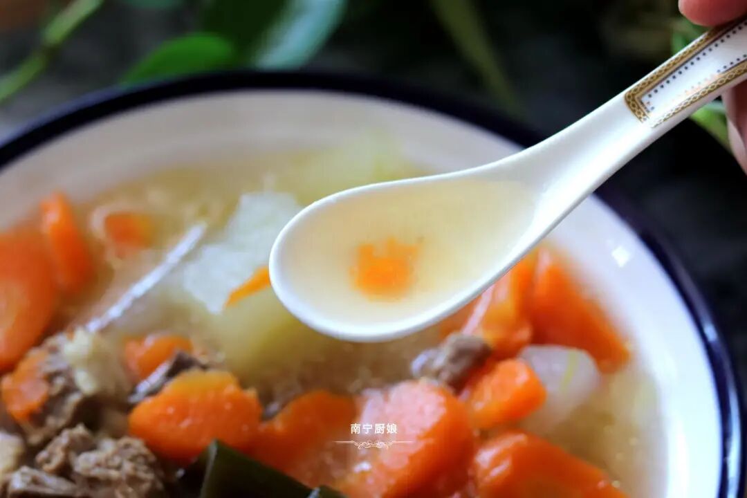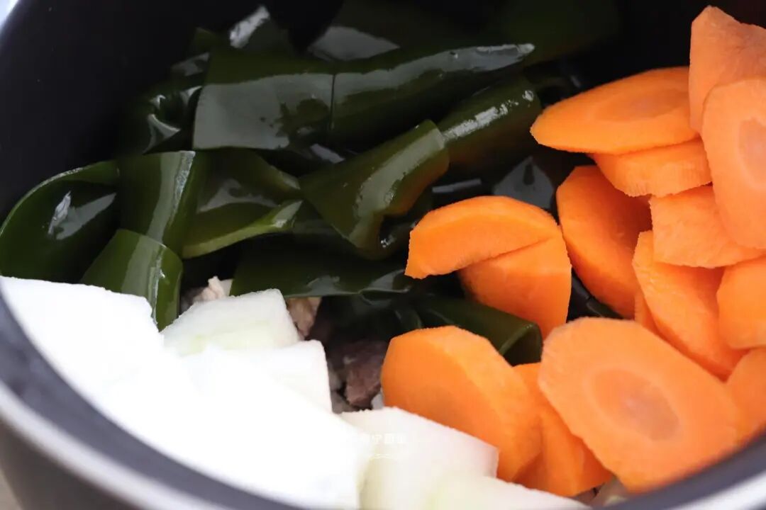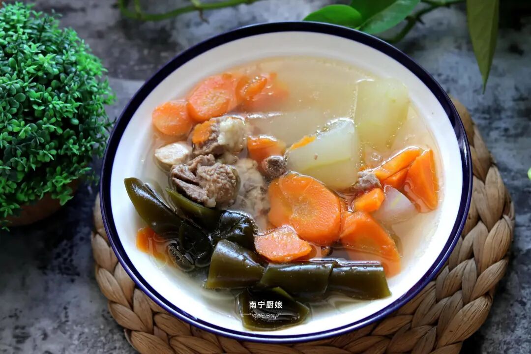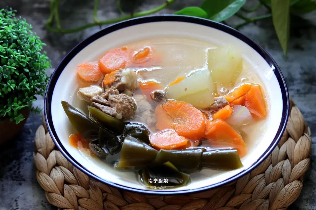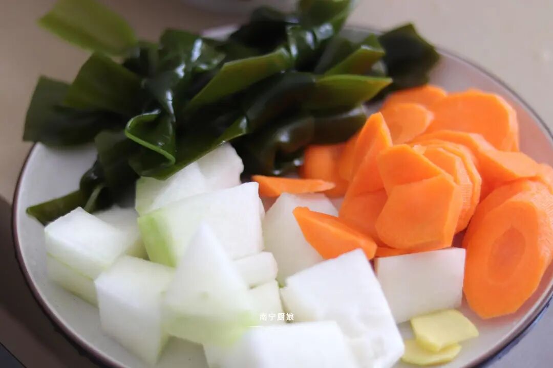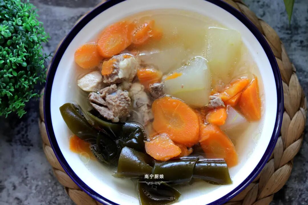 冬瓜海带排骨汤是一道清淡鲜美的营养汤,制作的主要食材就是排骨和冬瓜、海带,具有清热解毒、祛湿利尿、美容养颜的功效,同时也是一道不错的滋补养生汤,特别适合秋天天气干燥煲来喝,既可以补水又可以滋补身体。今天厨娘就来做一道暖胃又暖心的冬瓜海带排骨汤,不同普通的做法是,我加入了胡萝卜这种食材,胡萝卜大家都知道,日常用来和玉米排骨一起煲汤的时候,能让汤水更加的鲜甜美味,相信加入到冬瓜海带排骨汤中一起煲汤,味道更加的鲜甜可口。