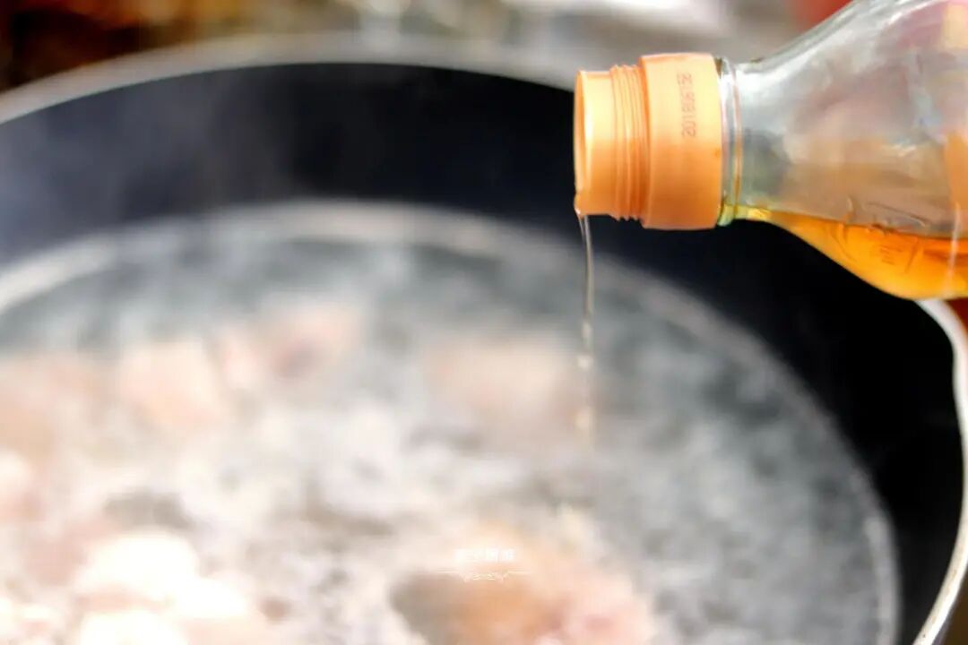 5、倒入没过食材2个手指节的清水,如果喜欢喝汤可以多放点,另外提醒的是,如果是燃气高压锅的话,建议多放点水,因为燃气高压锅不像我的电高压锅煮的过程中不喷水蒸气,所以会蒸发掉很多水分,锅里的汤水就变少了