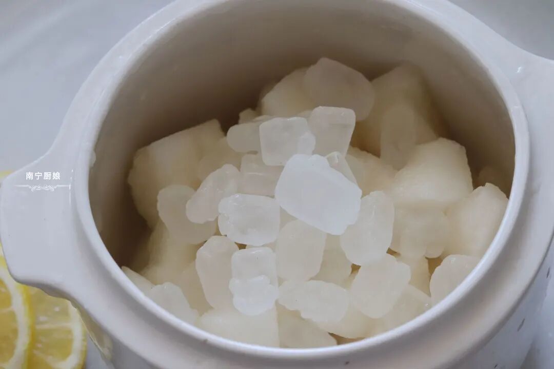 好了,接下来就让我们一起来看下这道做法简单,效果却极佳的雪梨糖水做法吧,不管有没有慢性咽炎,在秋天这个干燥的季节里,可以多炖给家人喝哦,润肺补水又生津。
