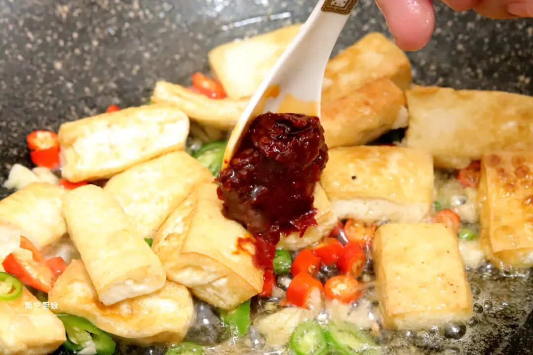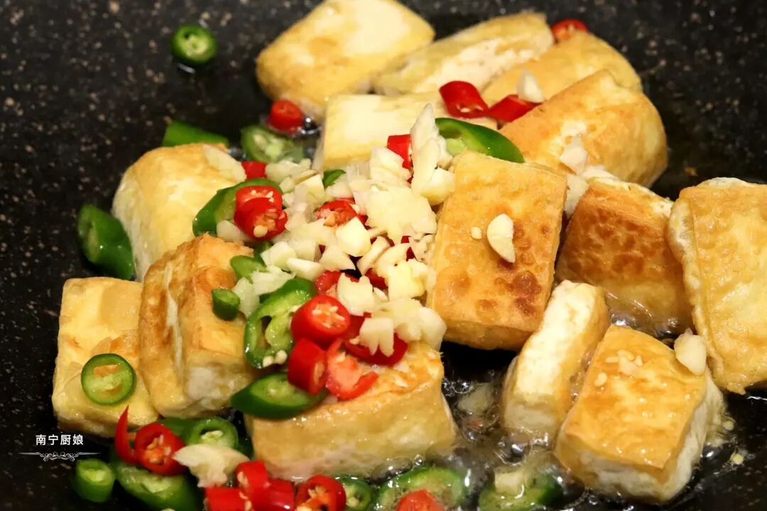 这道菜虽然没有肉,但是经过煎炸过的豆腐吃起来像肉的口感,而且非常入味,真是一道高蛋白低脂肪的家常菜,对于正在减肥的妹子,简直是福音哦!喜欢的话赶紧收藏起来学着做来吃吧!现在我们家每次做这道菜,老公都要吃上5碗米饭,真是变成猪了。