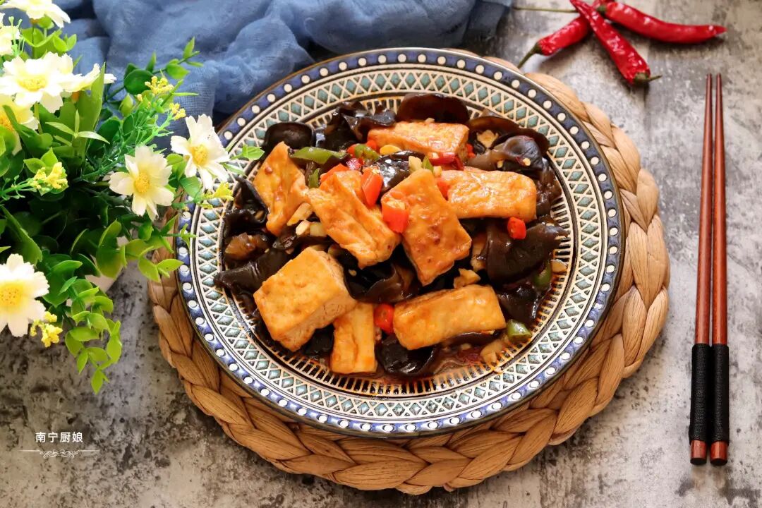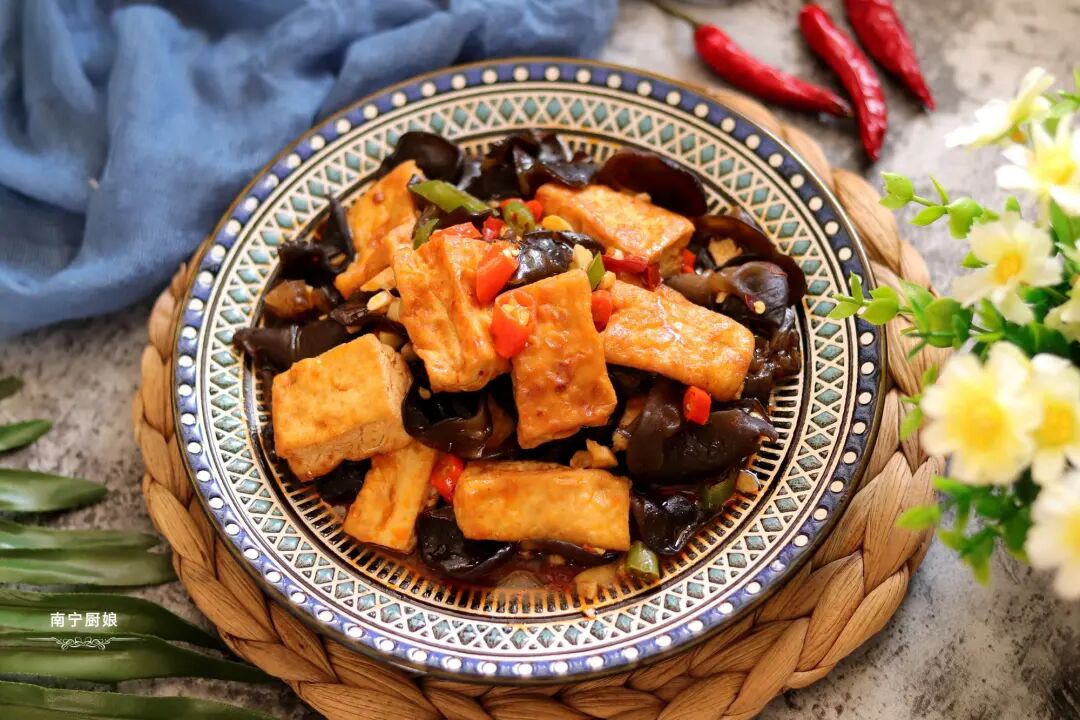 出锅装盘,一道色香味俱全的木耳烧豆腐下饭家常菜就做好啦!