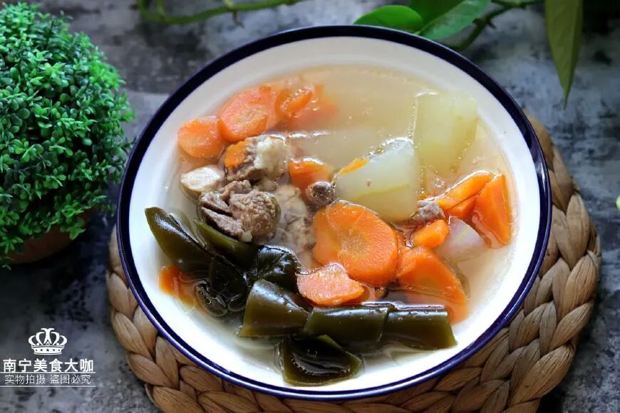 冬瓜小半边、胡萝卜1根、海带6小条、排骨350克、生姜1块