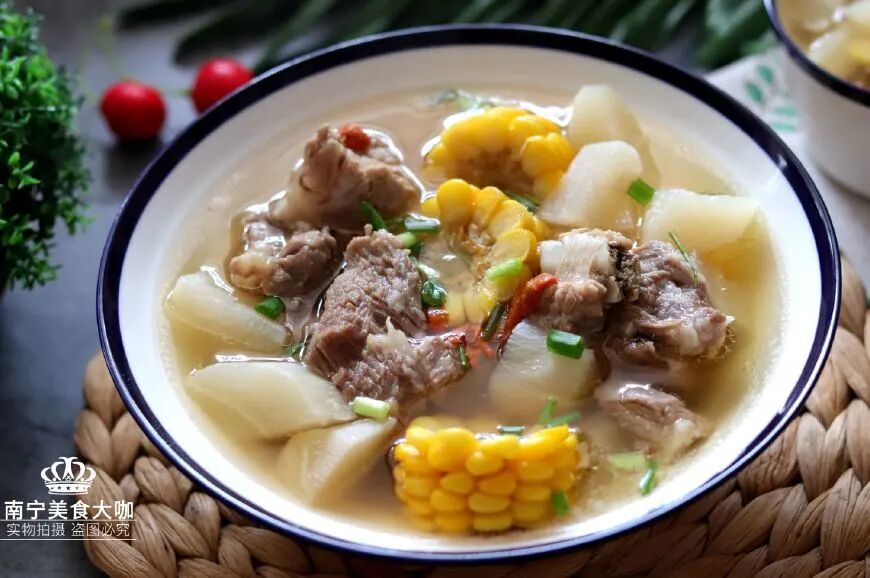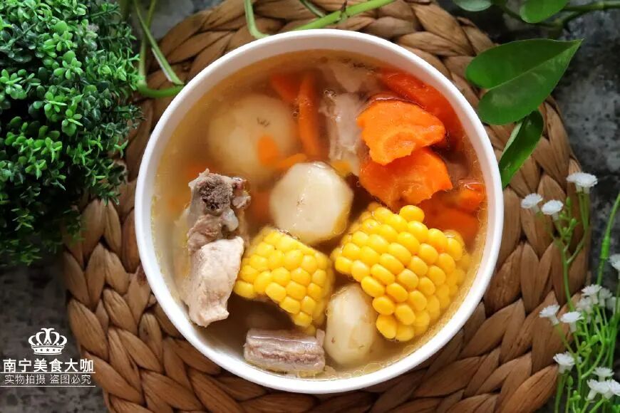 炖煮好后,出锅装碗,一碗鲜甜营养美味的胡萝卜玉米马蹄龙骨汤就最好啦!