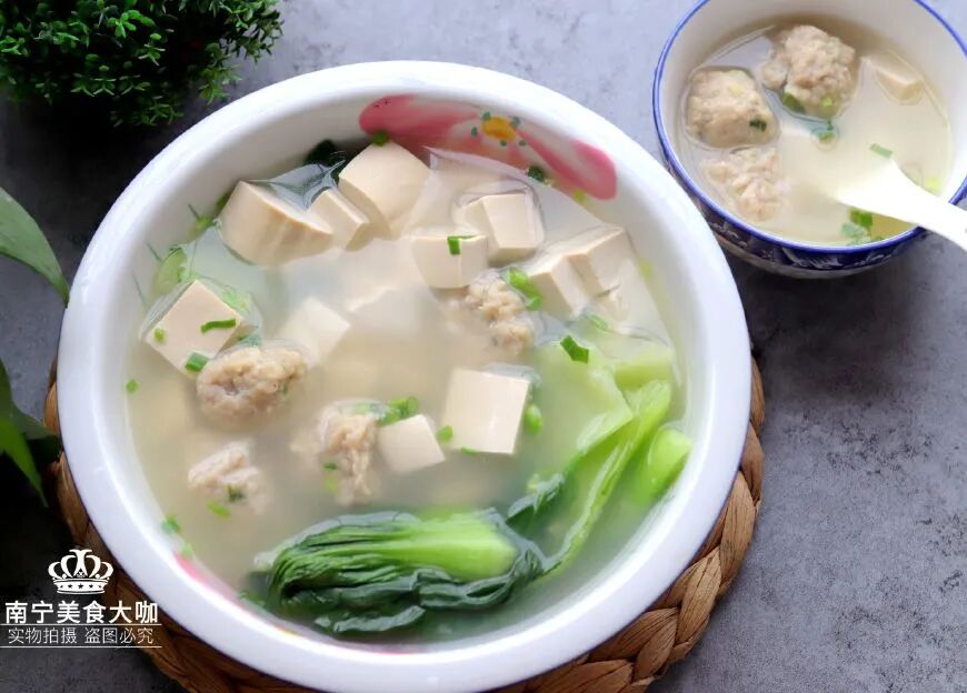 7、出锅之前撒上葱花点缀增香,一锅鲜香无比又营养美味的豆腐肉丸汤就做好啦!