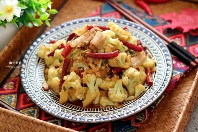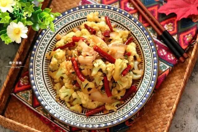 一盘色香味俱全的干锅花菜就做好出锅上桌啦!
