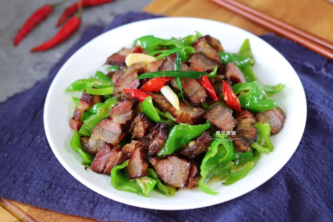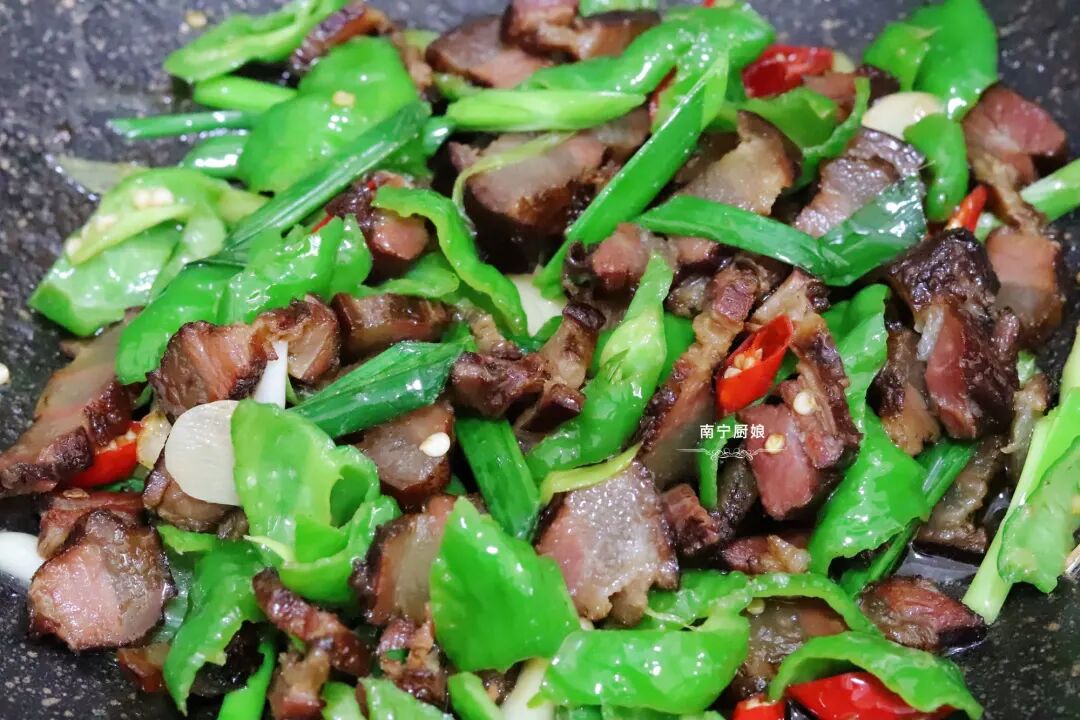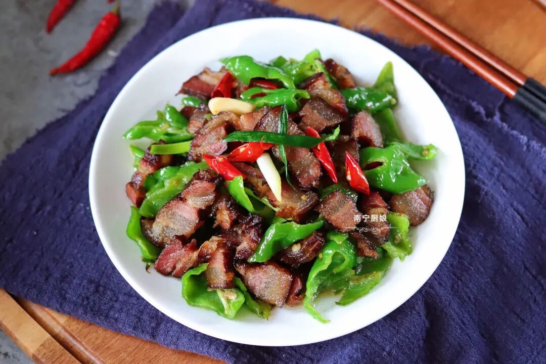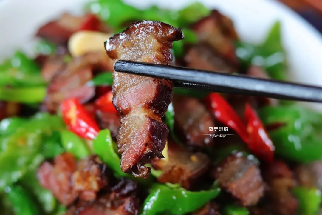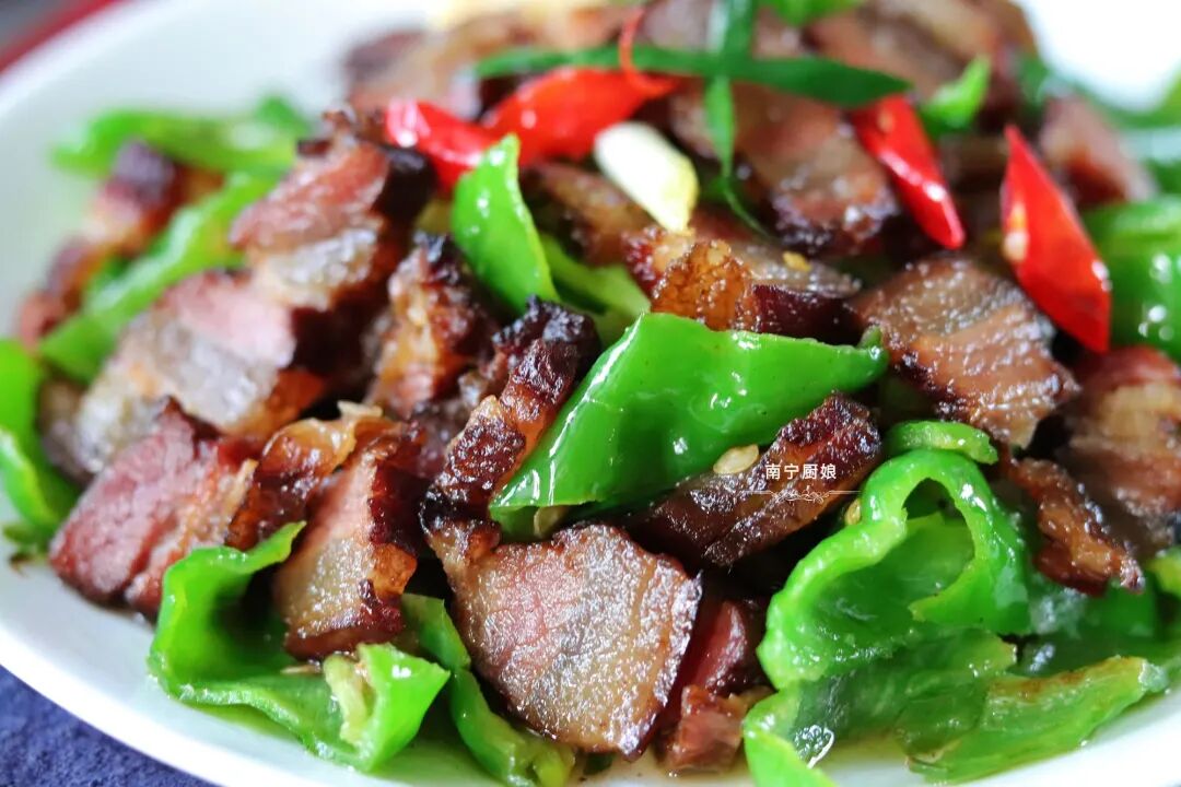 在我小时候的印象中,腊肉是农村最受欢迎的一道下饭菜,奶奶也经常用腊肉炒酸菜给我和弟弟吃,那时候觉得腊肉真的是人间美味,咸香下饭,每次奶奶做腊肉给我们吃,我和弟弟都能一起把一锅饭给干掉。现在长大了,我依然喜欢吃腊肉,也特别怀念那腊肉的咸香味。今天就用辣椒和腊肉一起炒着吃,味道依然十分的咸香下饭,自己一个人干掉了5碗米饭,吃得好满足。
