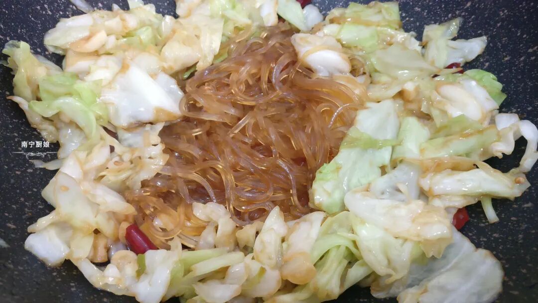 出锅装盘,一盘色香味俱全的圆白菜炒粉条就做好啦!