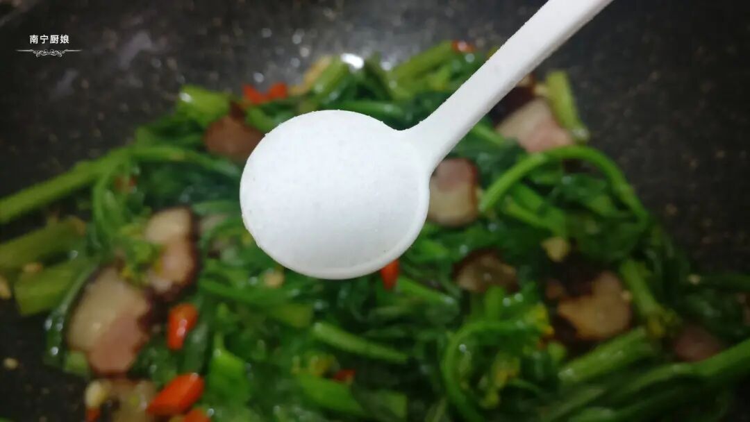 8、倒入1勺食盐调味,翻炒均匀即可出锅