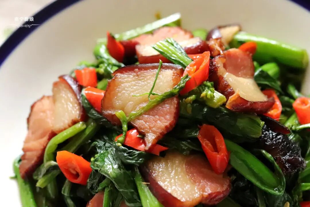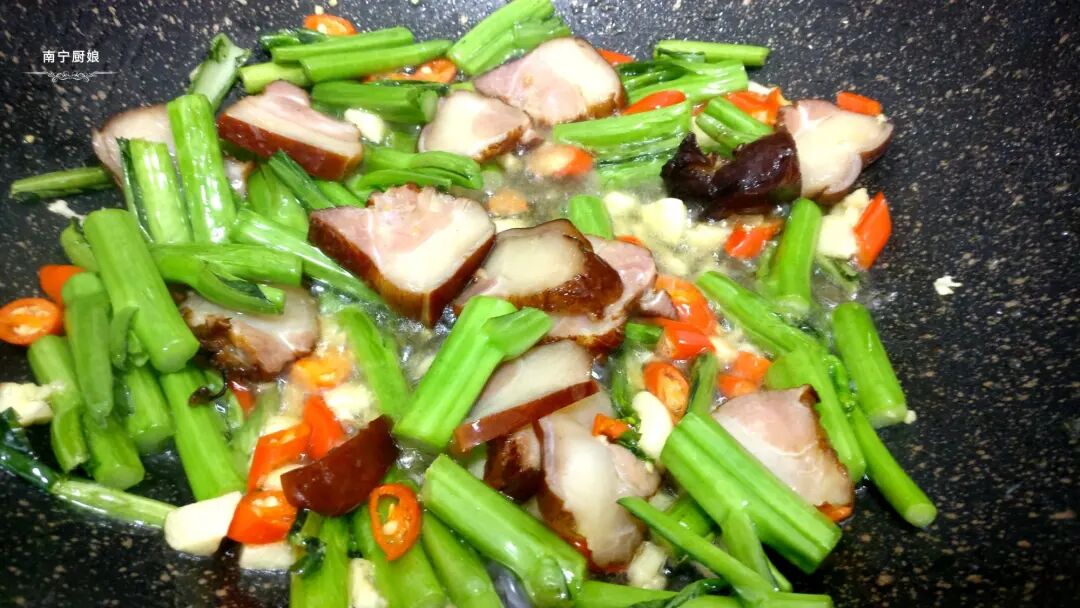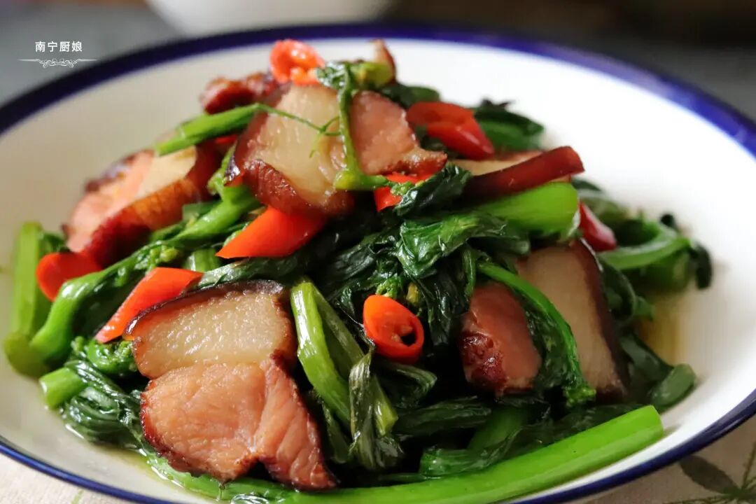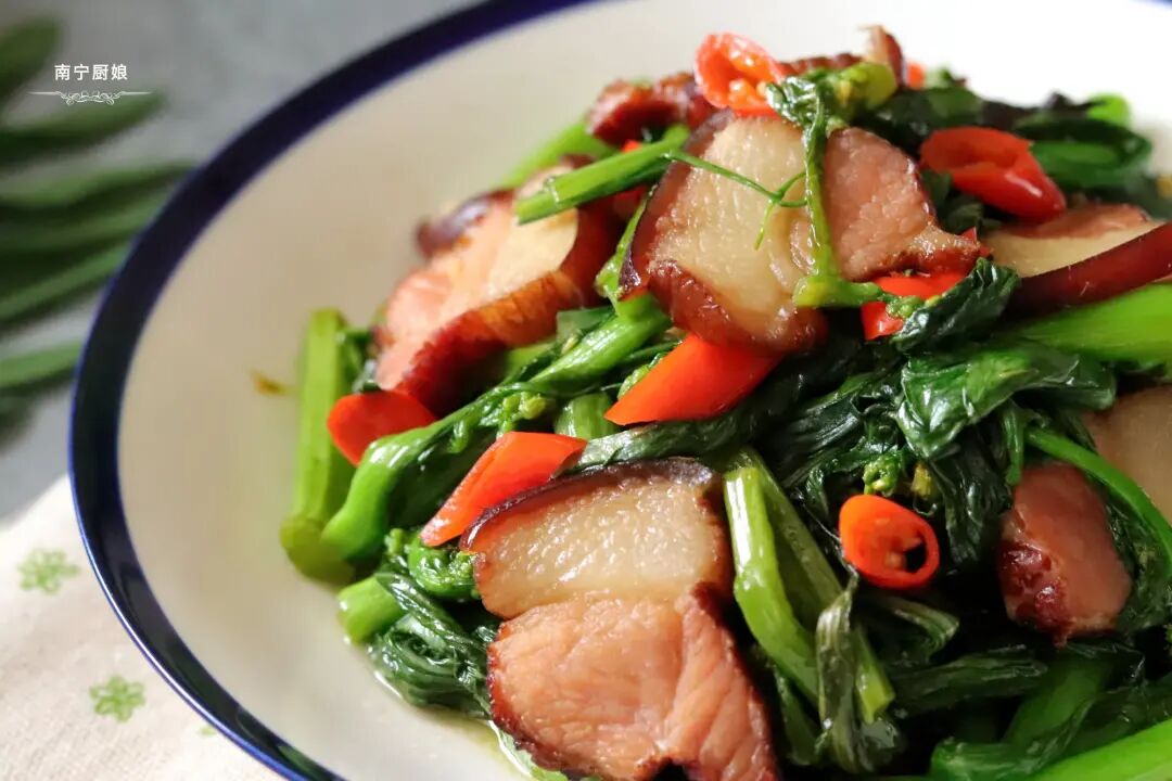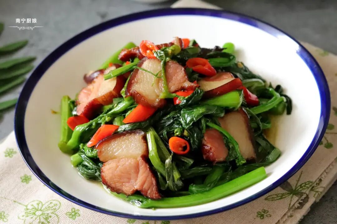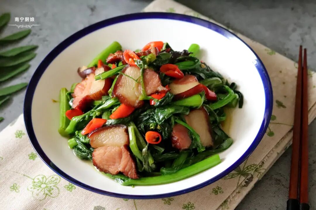 腊肉炒菜心