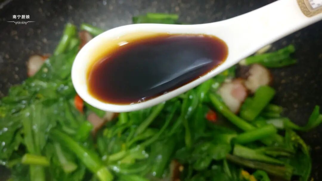 7、倒入2勺味极鲜翻炒均匀