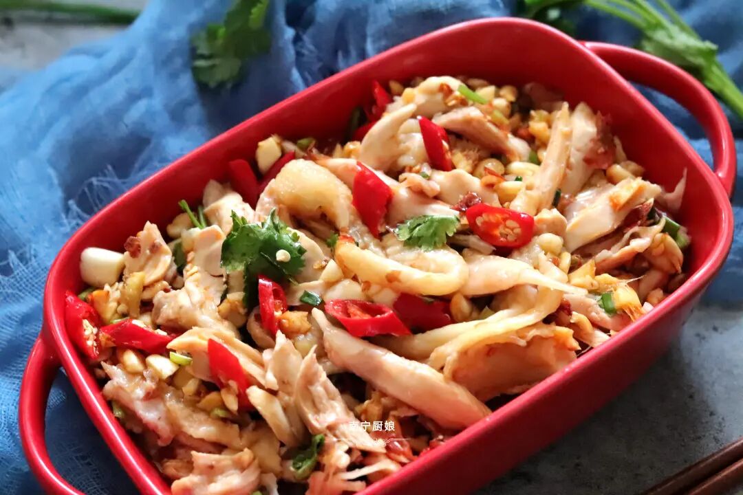 鸡皮好滑嫩哦,鸡肉鲜嫩爽口,又麻又辣,吃起来好爽呀,吃上一口就停不下来了!