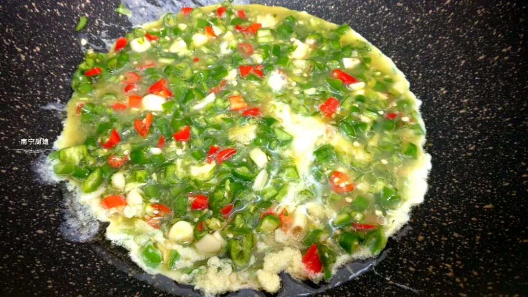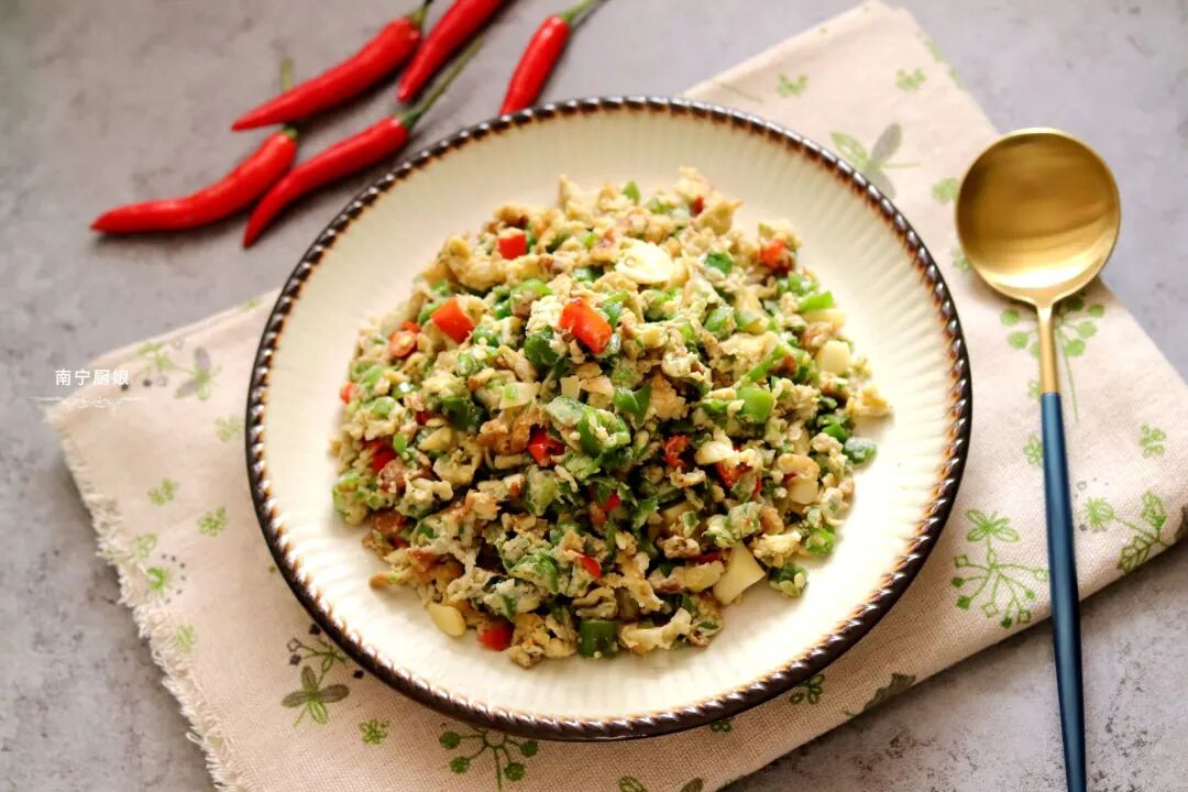 一道做法简单又美味的青椒碎炒蛋就做好啦,又香又辣真是超级下饭呢!自己吃了半锅饭,嘿嘿!