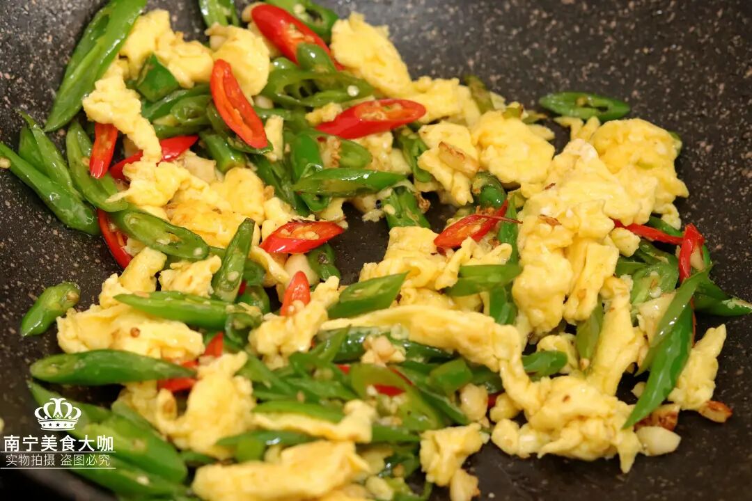 3、青椒炒鸡蛋时,吃得辣的朋友可以用螺丝椒或者线椒炒,绝对够辣下饭,吃起来够过瘾;如果吃不了太辣,那就买普通的青椒即可。