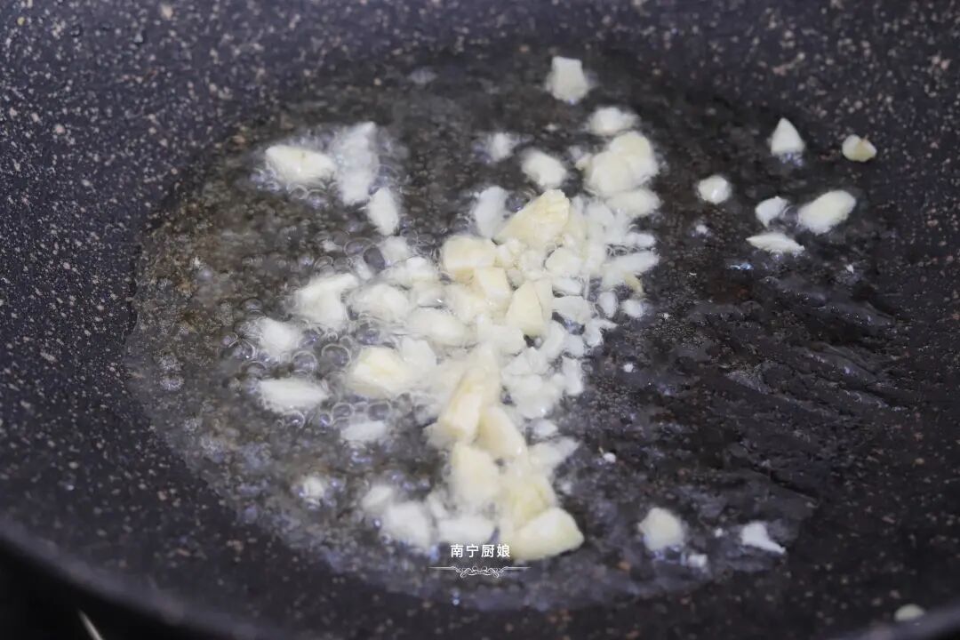 5、重新在锅里倒入适量的油小火烧热,然后倒入蒜米爆香。