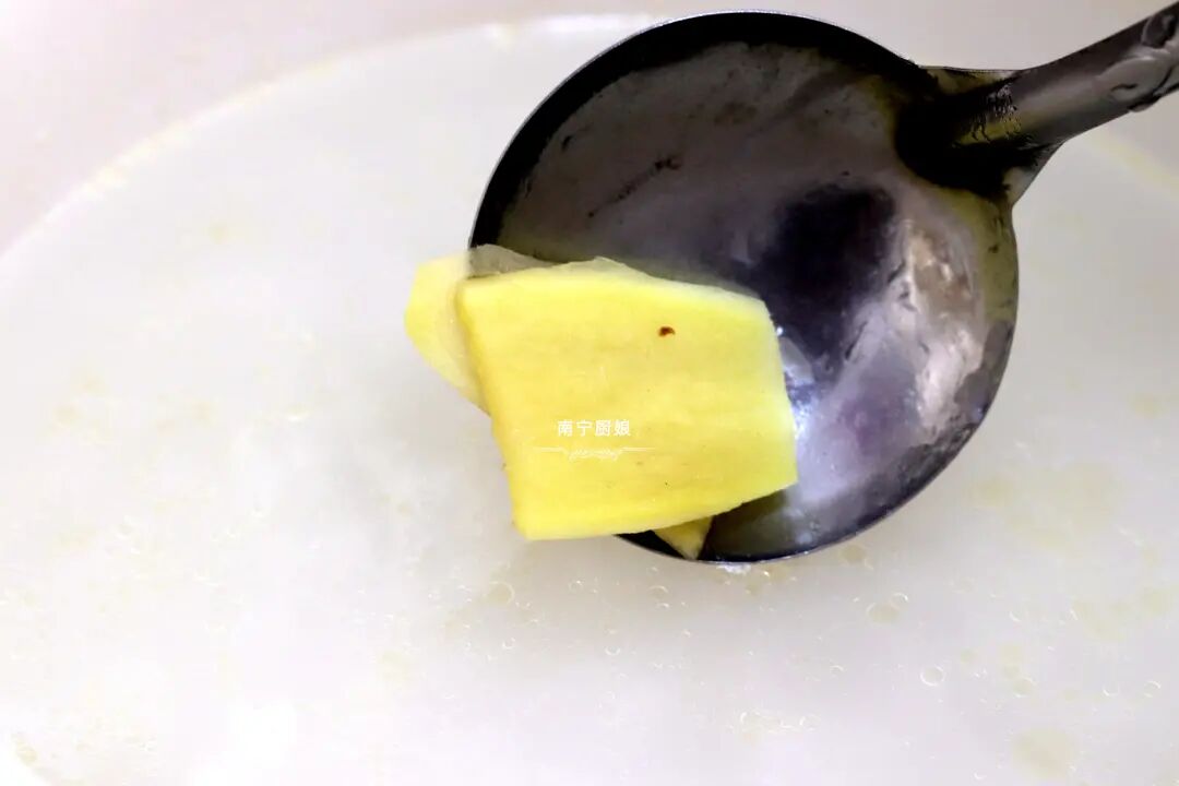第二步:开大火把粥煮沸,煮到米粒开花即可,然后放入生姜片,调小火继续慢慢煲煮。