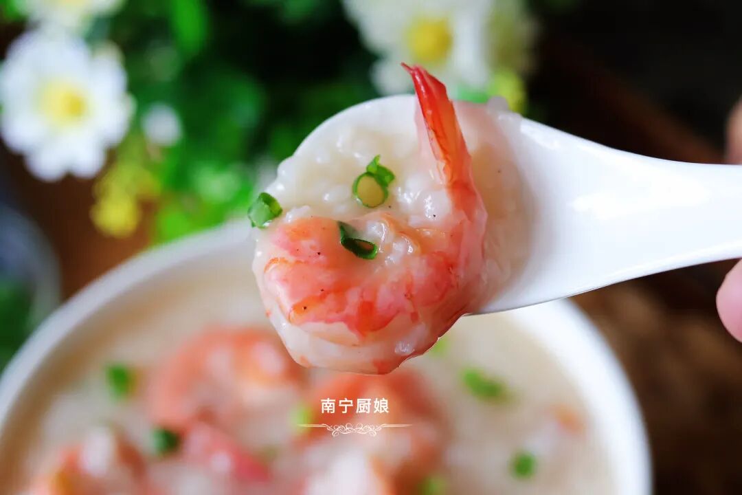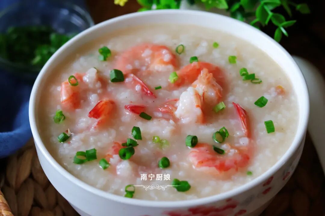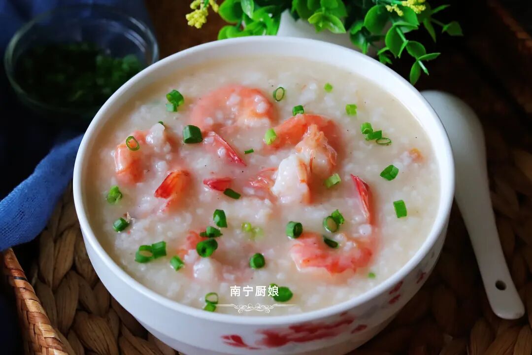 大米自古以来就被认为具有补中益气、健脾养胃的功效,而鲜虾营养丰富,富含蛋白质和钙质等微量元素,具有强身健体、补钙等功效,两者结合煲煮成粥,营养翻倍,鲜香爽滑又滋补身体,冬天可以多煮给家人吃!