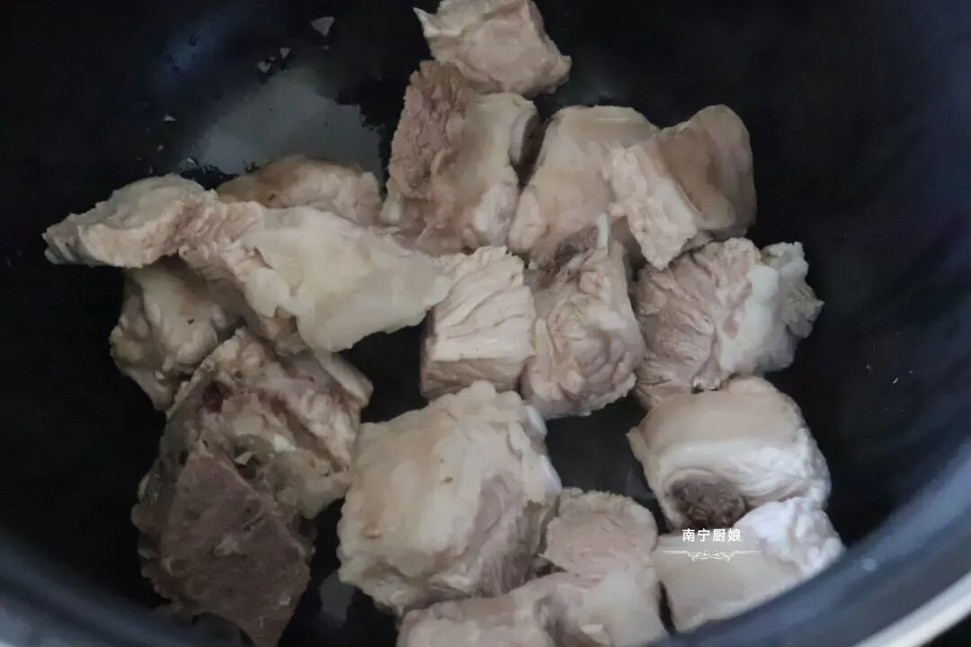2、开大火把锅中水烧开给排骨焯水,然后捞出用温水冲洗掉浮沫后装入电压力锅中。