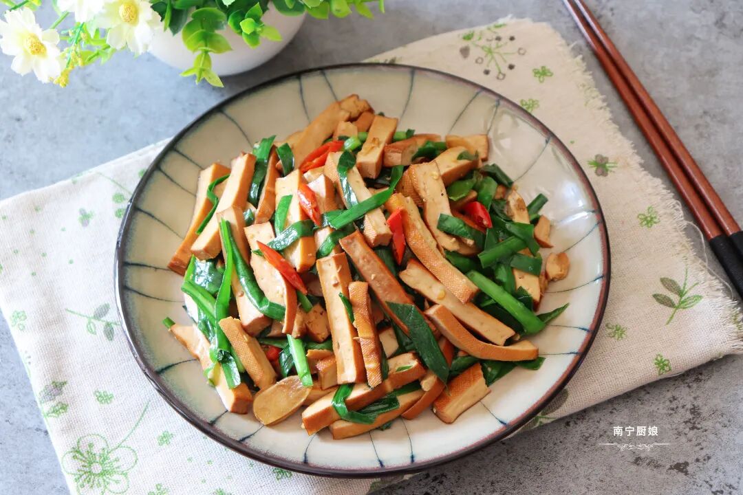 掌握了让豆腐干快速入味的技巧后,接下来就让我们一起来看下实际操作吧!今天就和大家分享一道很适合懒人的快手菜——蒜苗炒豆腐干,做法简单又美味,10分钟就搞定。