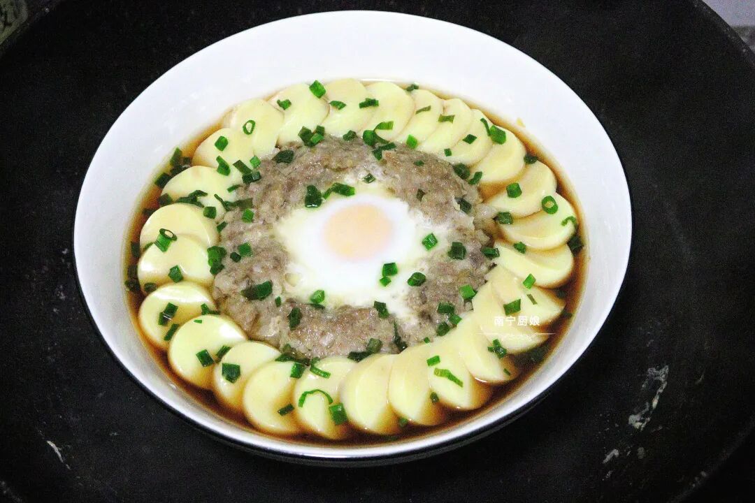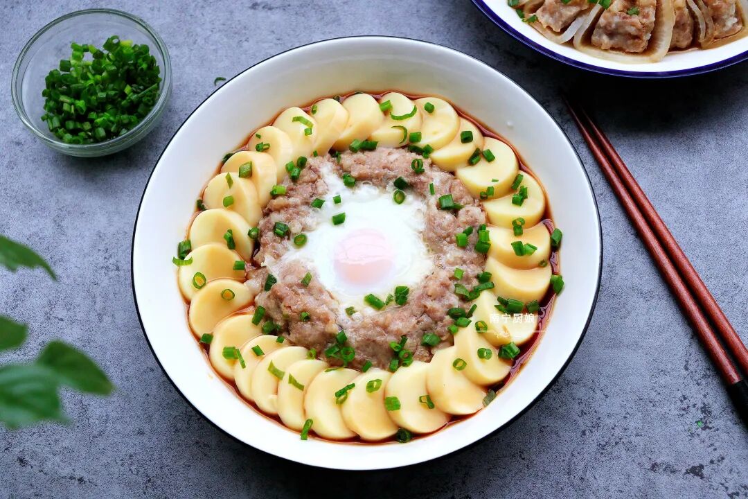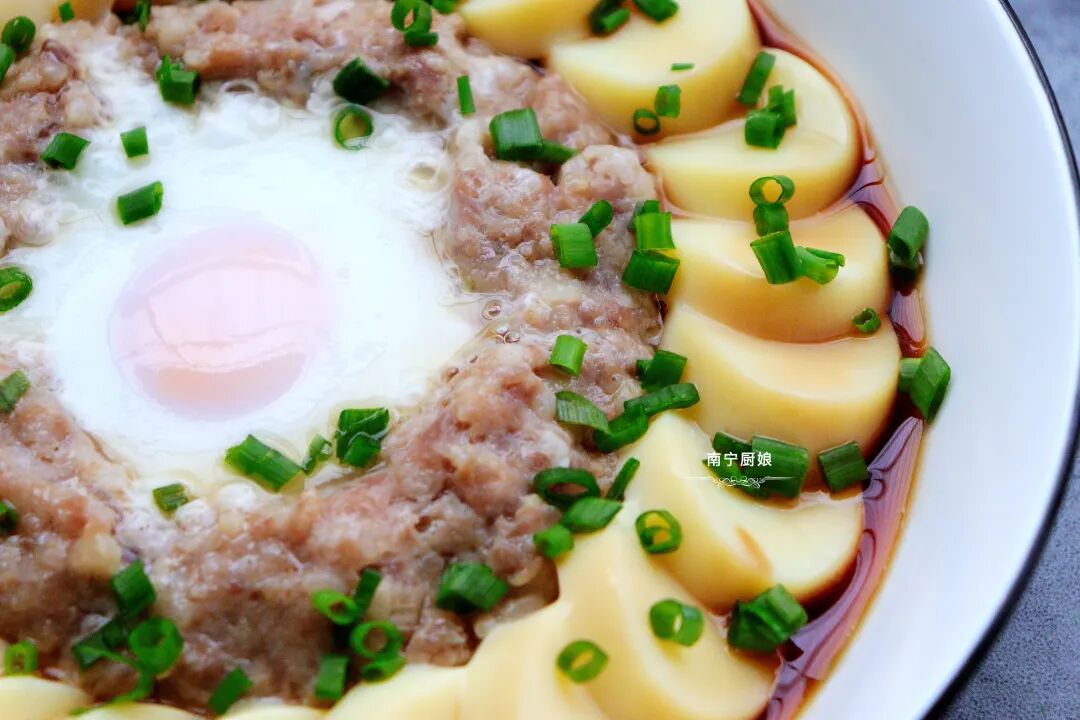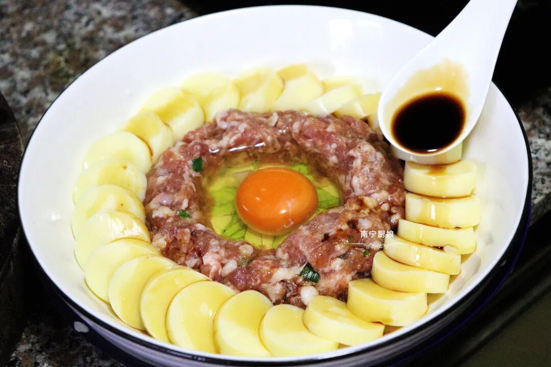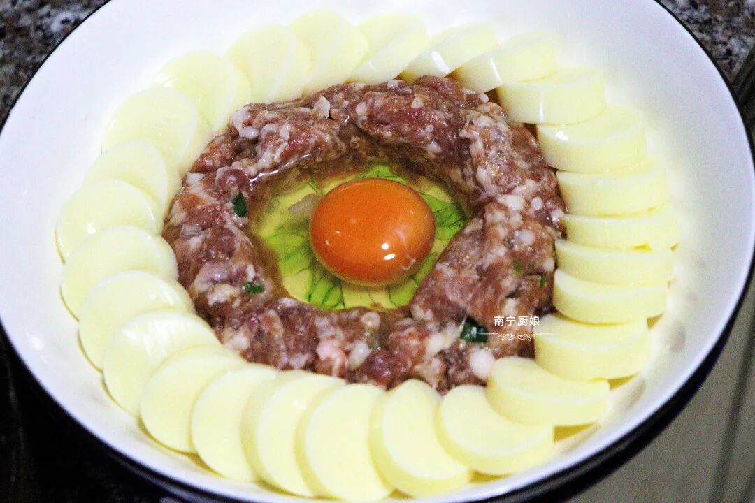 1,很多人说自己做的肉末或是肉馅都是干巴巴的,没点汤汁,其实很简单,在拌肉末(肉馅)的时候,放点清水进去,打匀,这样蒸出来的肉末就能多汁爽滑了。
