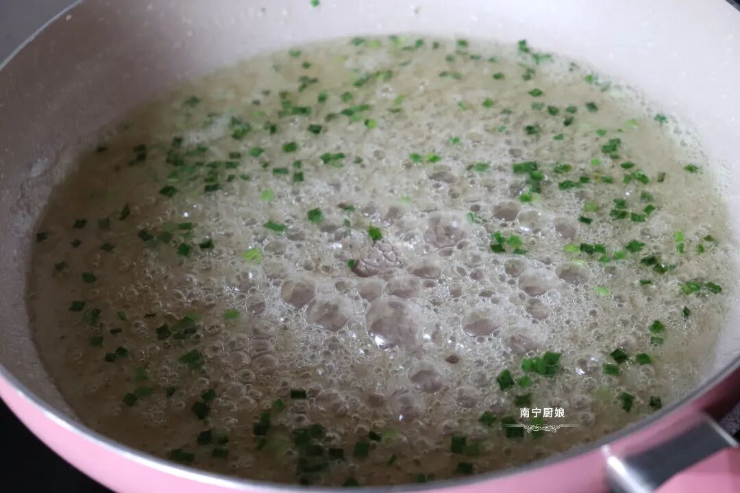 5、在熬煮糖浆的时候,可以用筷子不断的搅拌,以免糖浆糊锅粘锅底,如果锅中的糖浆起泡由起初的大颗慢慢变成密集的细泡泡就说明水汽蒸发得差不多了。