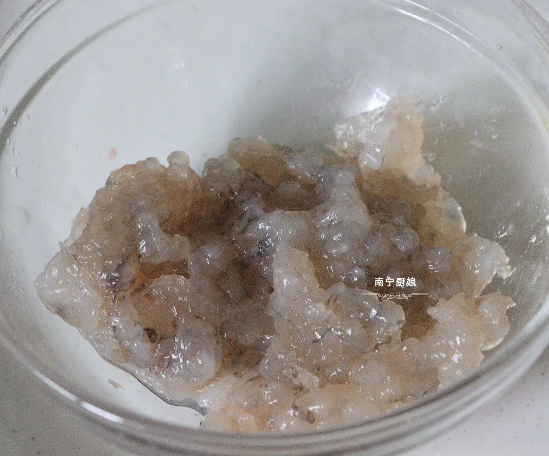 5,若觉得虾蓉在下锅时不容易团成团变虾圆子,可以适当的在给虾蓉调味时,放点淀粉,这样就很容易了,而且煮的时候也不易撒掉变成一锅虾糊糊。