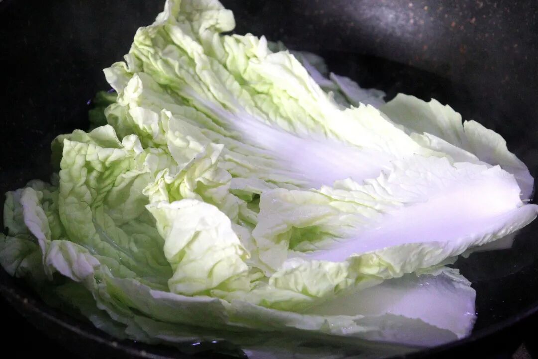 1,家里有微波炉的童鞋,可以直接将洗净沥干水分的白菜放到微波炉里高火叮3-4分钟,这样更加省时省事。时间可根据量的多少及微波炉的火力来自行调节,我给的时间是按照自己家做得来的,大家可以灵活变动。