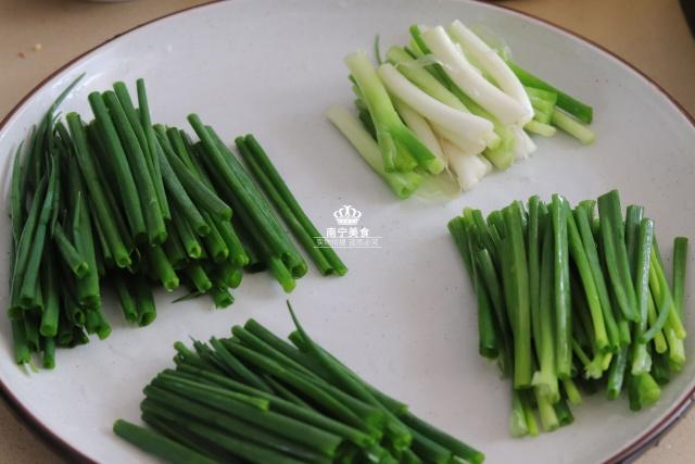 1、将绿油油的香葱清洗干净后,将其切成均匀的小段,然后再沥干水分装盘备用。(可不是洗完香葱就直接等用了啊,切记要沥干它的水分,否则一会下油锅的时候,会吓到你的小心脏哦)