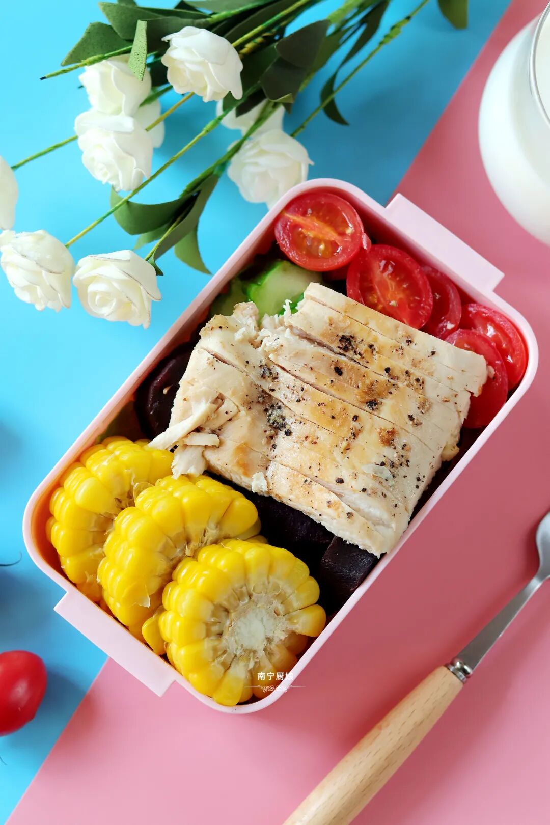 千万不要把便当仅仅当作饱腹之用,尤其是在这种特殊的时期,我们更应该为自己的健康高度负责,注重合理的营养搭配。鸡肉的热量远不及猪肉,同时也富含蛋白质。加一些蔬菜荤素齐上阵才能为你的身体打造一道更坚实的防线!蔬菜中含有丰富的维生素以及其它微量元素,大家也可以根据自己的口味和喜好酌情选择。主食优先推荐玉米、紫薯等,有助于减脂,还能增加饱腹感。