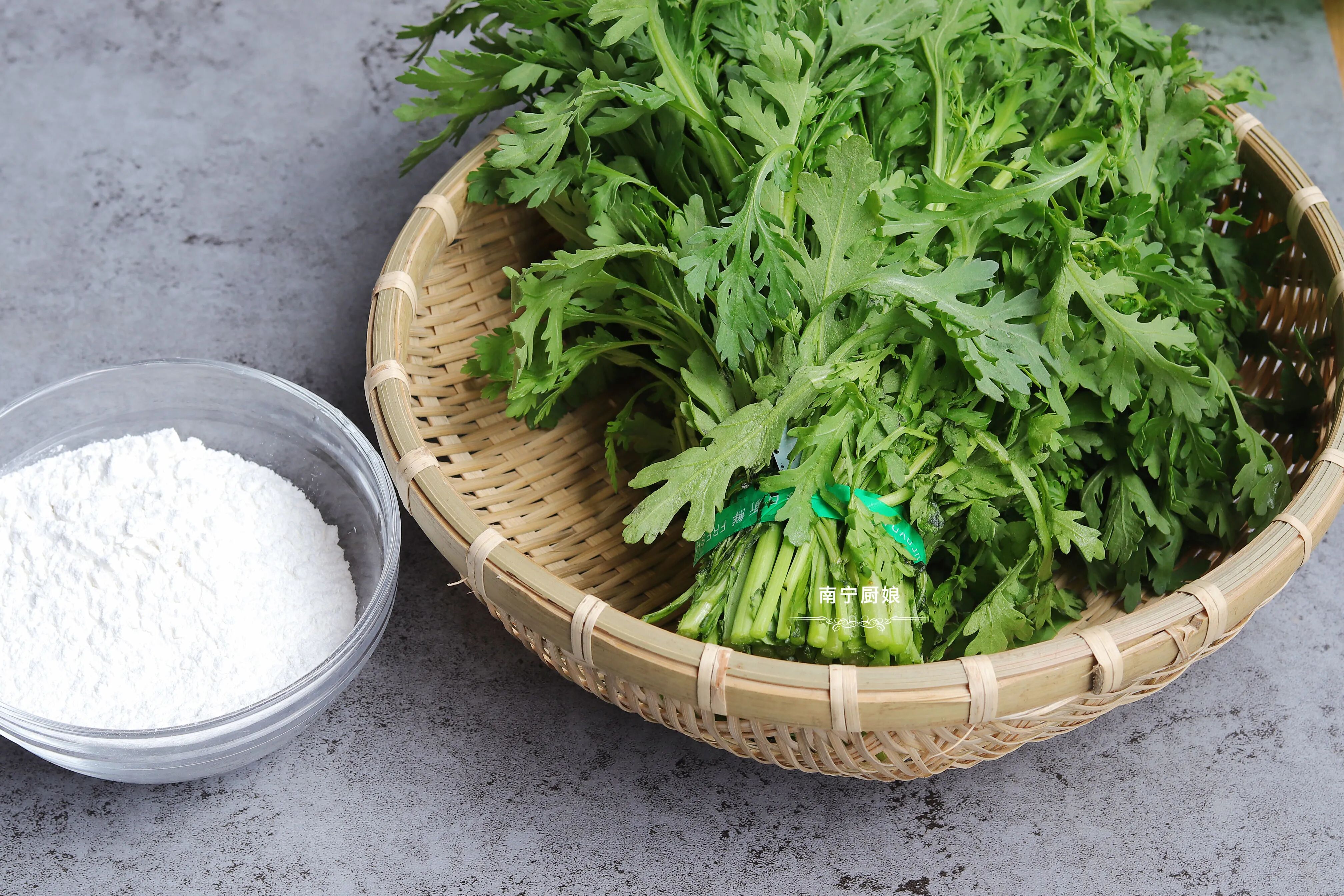 准备好食材:茼蒿1把、糯米粉300g、白糖、食盐、食用油。