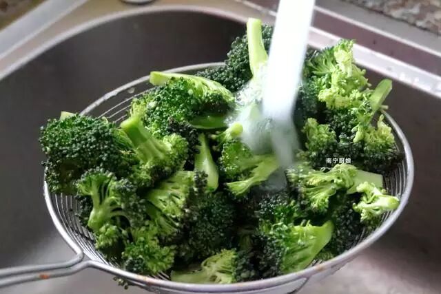 2、西兰花热水焯水后,再用滤网捞出到水龙头下用凉水冲洗冷却沥干水分。因为西兰花焯水后的温度比较高,它在离开热水后与空气中的氧气接触而产生热氧作用,导致营养素的继续流失。所以,焯水后的西兰花很有必要及时过凉水冷却降温。有条件的家庭用强冷风来冷却可以减少营养的流失。