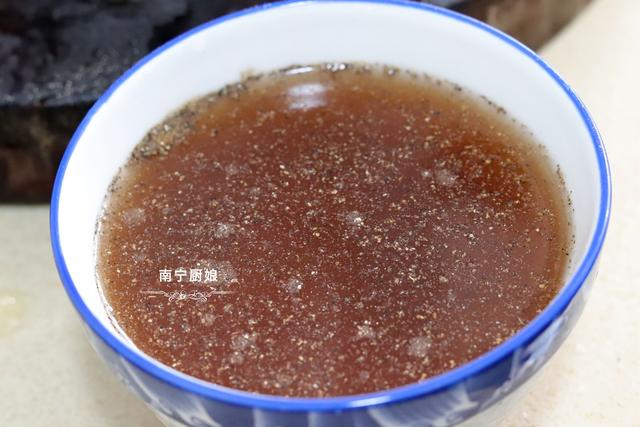 1、调配酱汁,把蜂蜜,番茄酱,醋,料酒,黑胡椒粉,盐放进同一个碗中,加入少量清水,用筷子搅拌均匀。