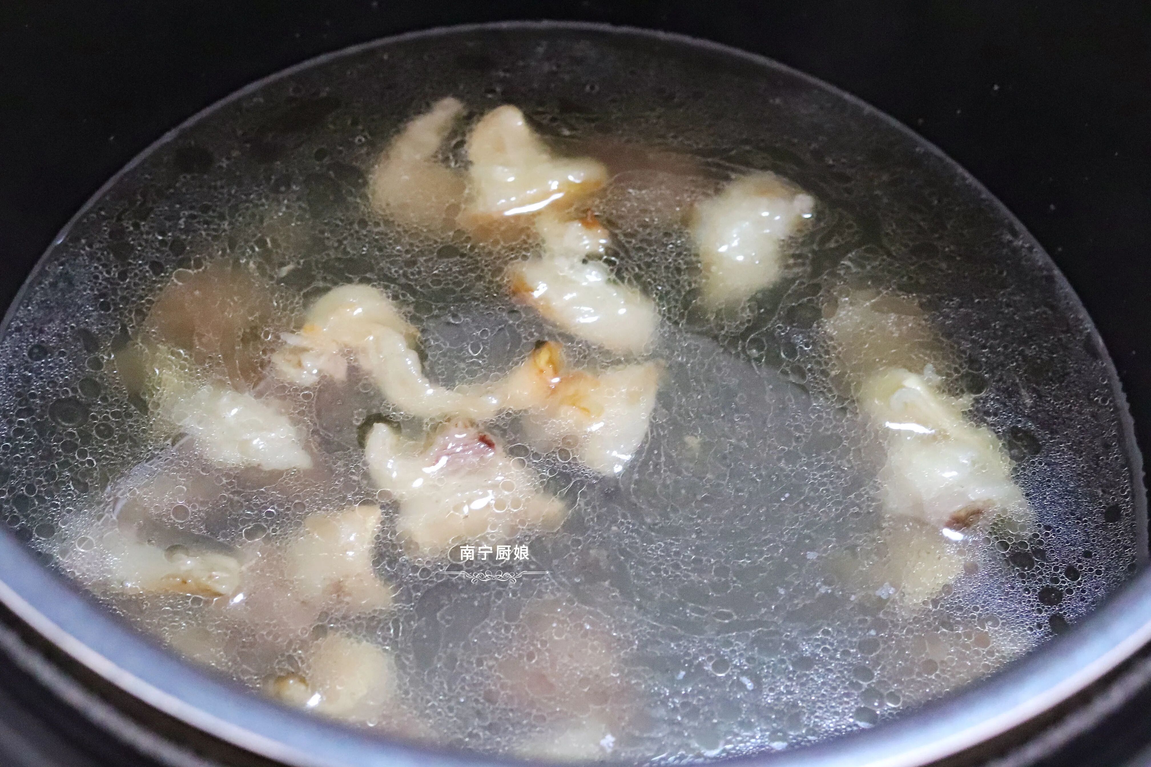 4、把生姜夹出来,倒入半锅开水,然后继续开启煮饭模式,煮个40分钟。