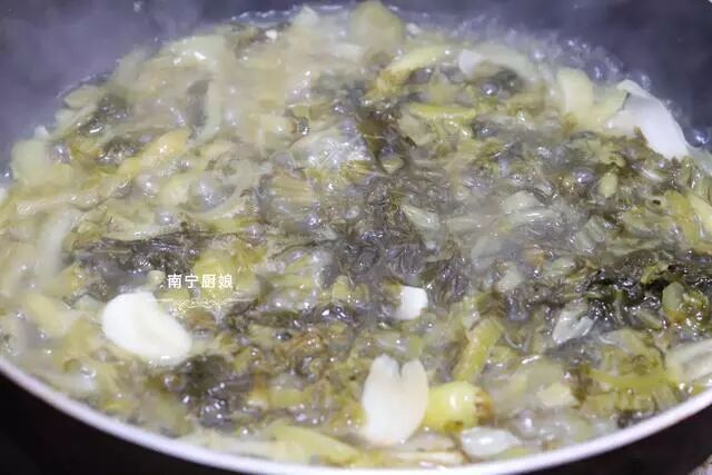 5、一定要把酸菜炒出香味了再倒入开水,要不然汤不够酸不够香。
