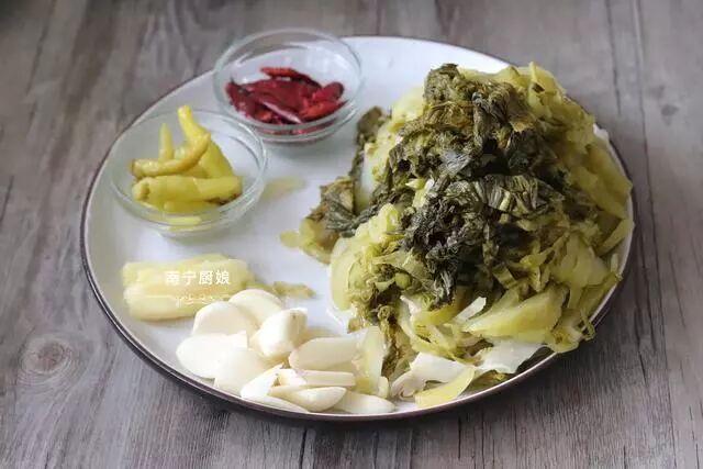 4、酸菜切记要买老坛酸菜,这样的酸菜腌制出来的酸味才够味,超市里包装类型的酸菜我试过,煮出来的味道不好。