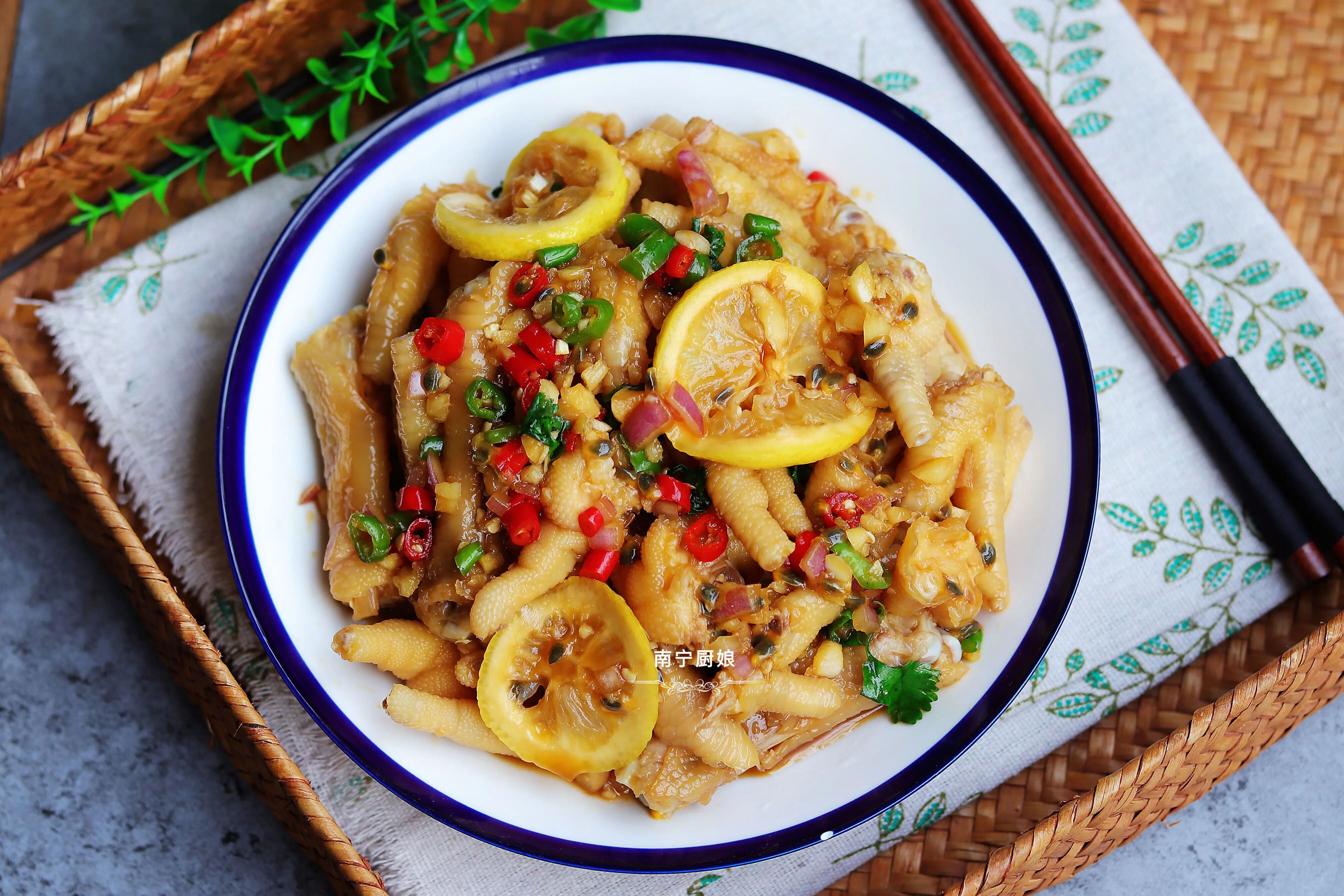 作为妹子来说,在凉拌菜中最爱吃的莫过于柠檬鸡爪了,在加入柠檬和百香果以及辣椒和大蒜腌制凉拌出来的鸡爪,吃起来酸辣脆口,让你吃上一次就上瘾,就连家里的男人也特别喜欢拿来作为下酒菜,每次家里来客人,老公必要求我做上一盘来招待客人。