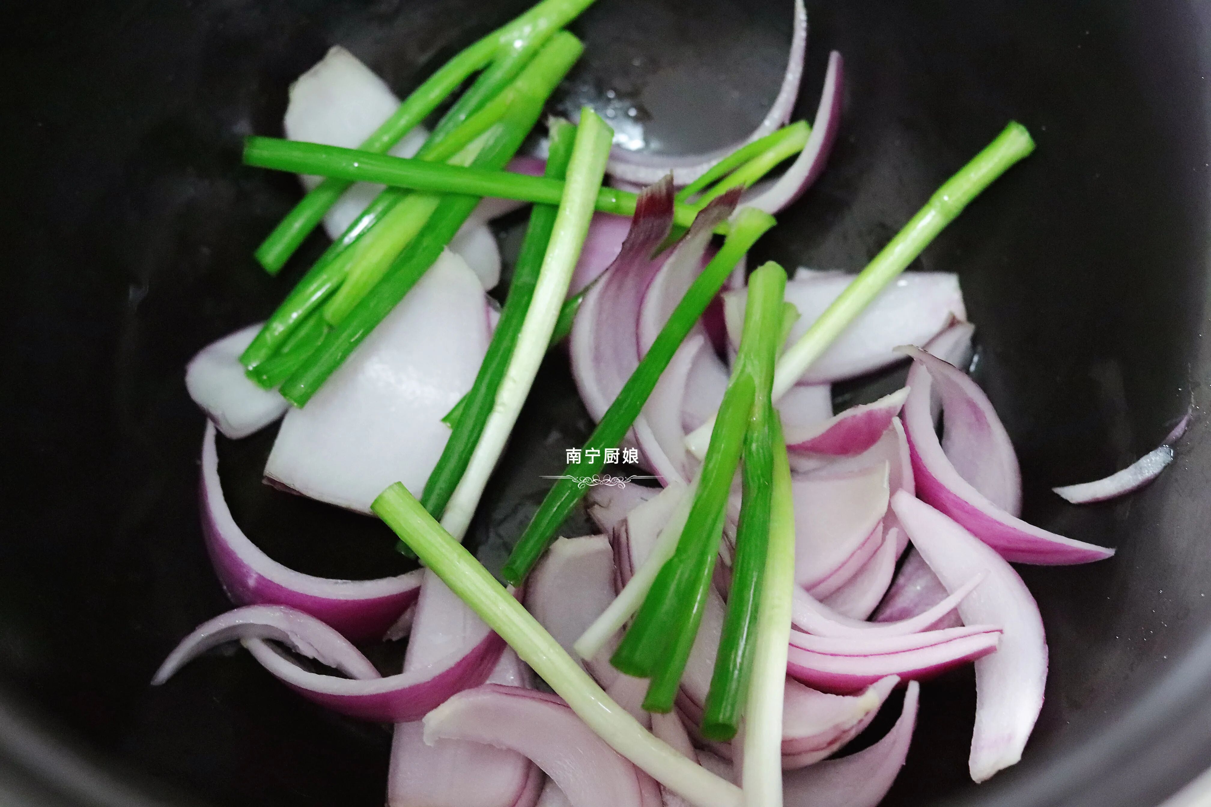 2、把香葱段和洋葱丝铺在电压力锅底,然后把腌制好的鸡腿放入电压力锅中,按下电压力锅的煮饭模式。在煲煮的过程中,为了安全起见,可以在煮的过程中检查一下,鸡腿有没有烧焦,适当地挪动翻面也是可以的,之后就等时间到了就可以吃了。