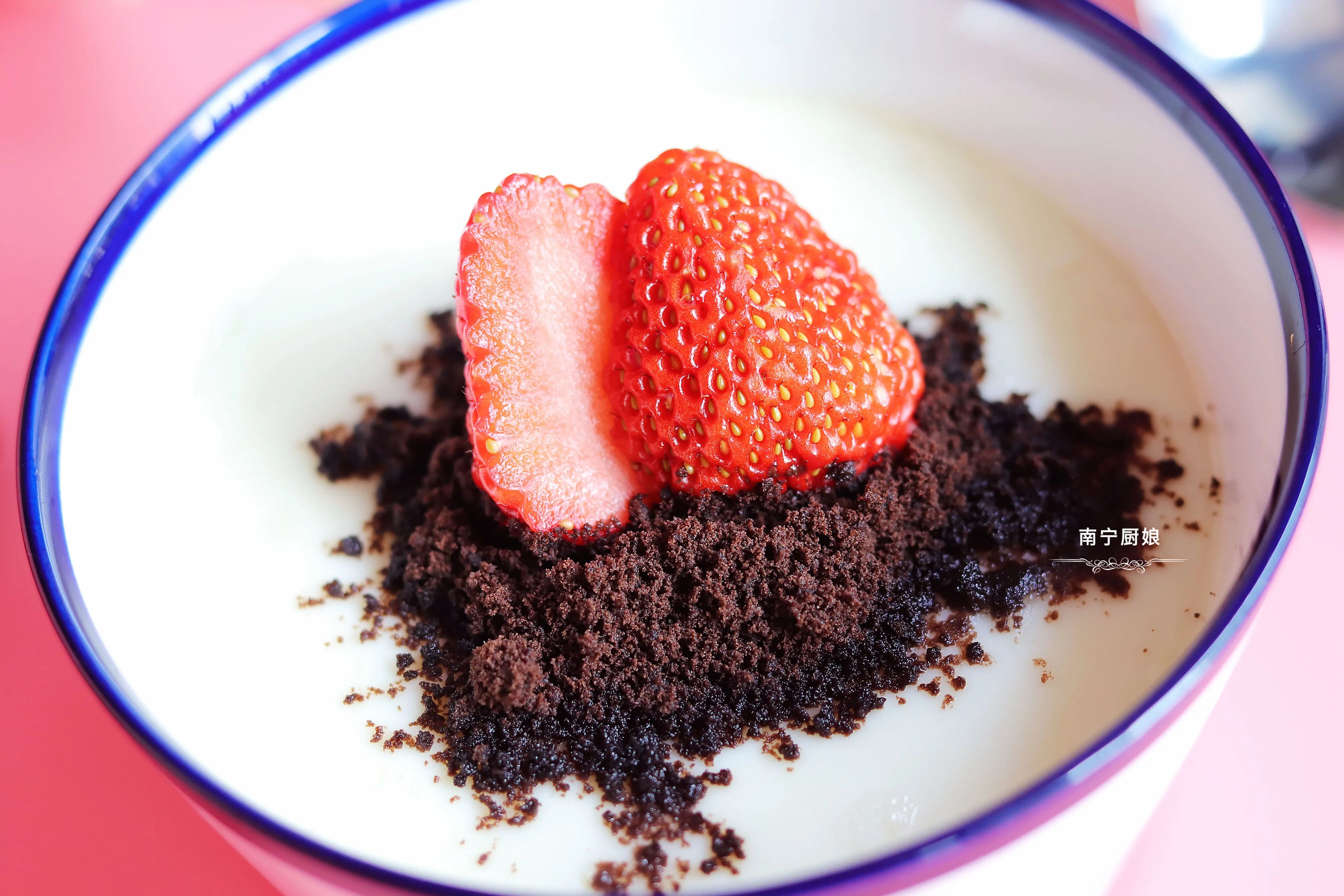 再把草莓清洗干净后,对半切开后,放到双皮奶上点缀即可开吃啦!这样做出来的旺仔牛奶双皮奶不仅颜值高,口感吃起来也是细腻爽滑,搭配上奥利奥饼干细粉一起吃,别有一番风味,吃完双皮奶,再把草莓给干掉,酸甜可口,实在妙哉。