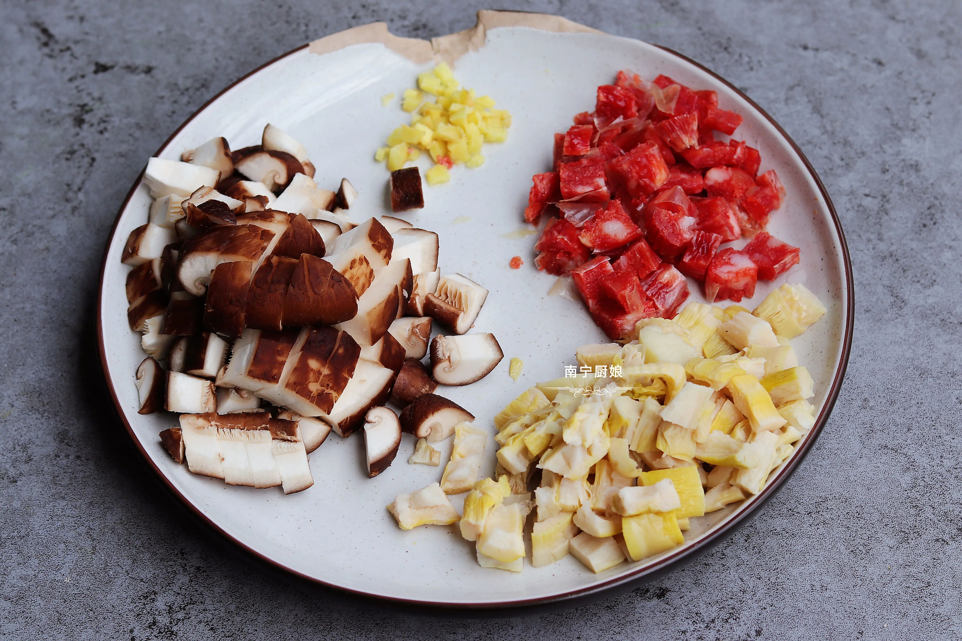 2、我用都是家里腌制的竹笋,大家如果家里没有的话,可以去市场上购买竹笋干回来泡发后切丁来加入,也可以把竹笋换成其他的食材也是很不错的!