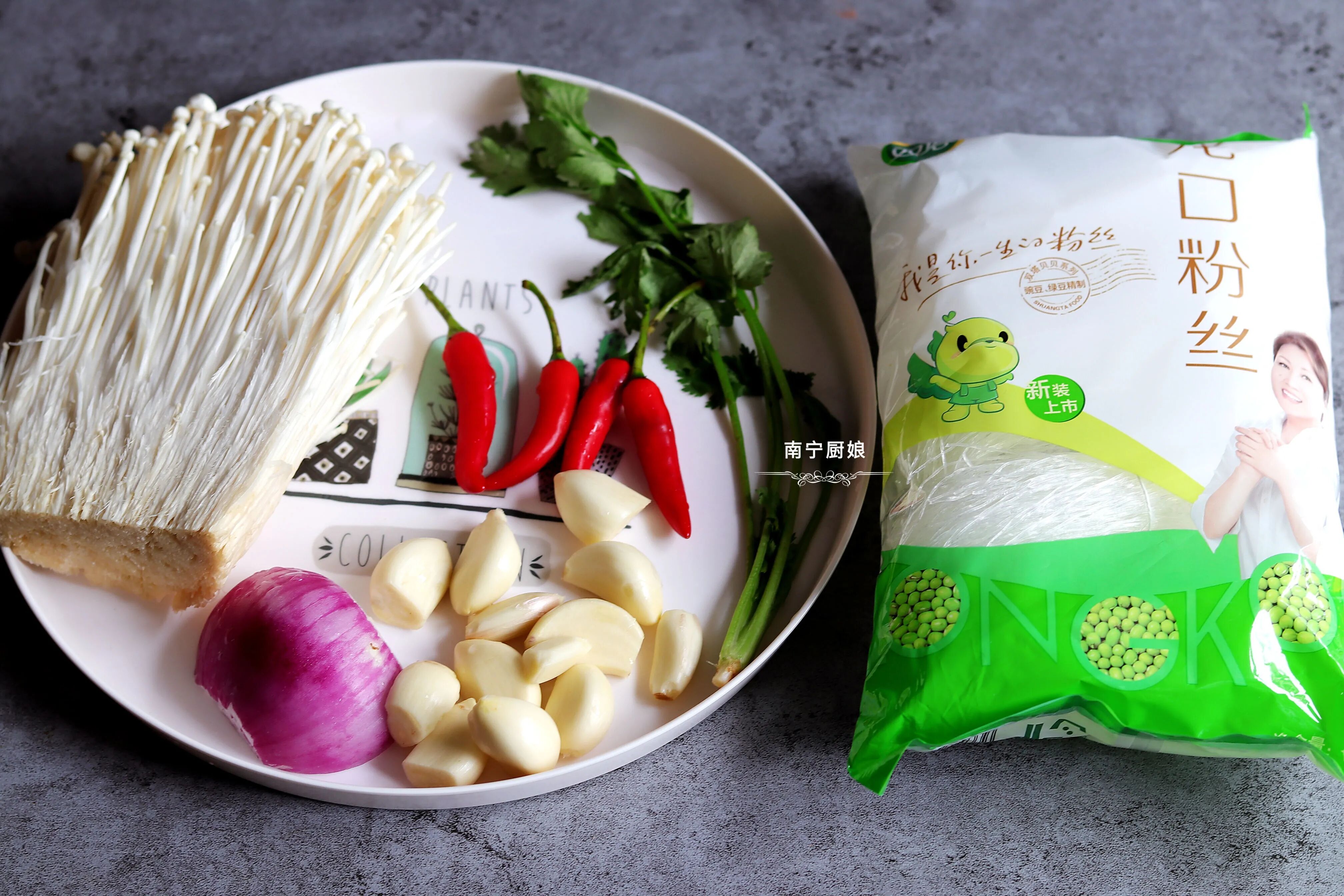 2、金针菇一定要切掉根部,切掉根部的金针菇更嫩更软,是锡纸花甲粉的画龙点睛之笔!