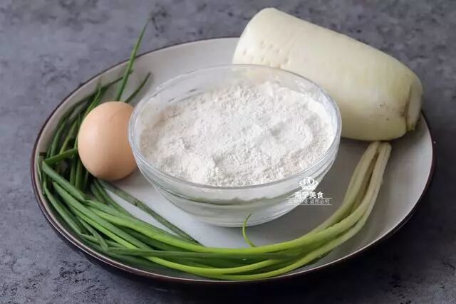 准备好食材:白萝卜半根、鸡蛋2颗、面粉200克、香葱1根、胡椒粉5克、食盐1勺。