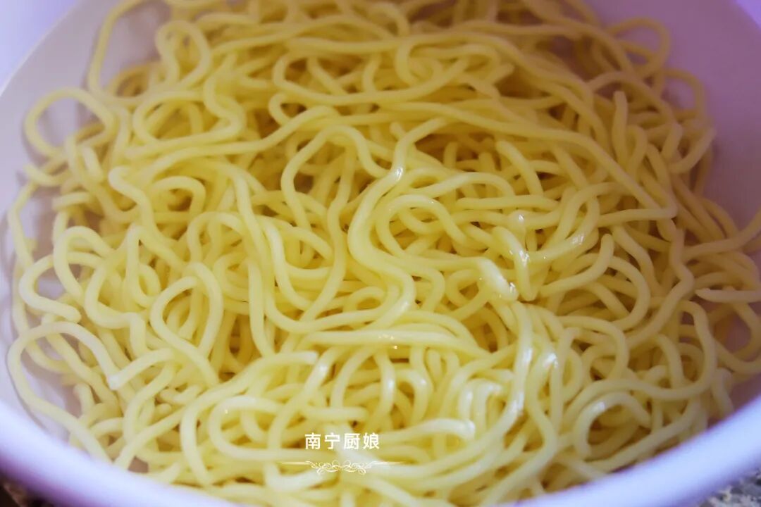 注:很多人炒面时候都是直接下锅炒,其实这样是不对的,应该先煮至七八成熟,然后再放入凉水中浸泡后再沥干水分下锅炒,这样炒面不仅容易熟,也更容易入味,口感Q弹。